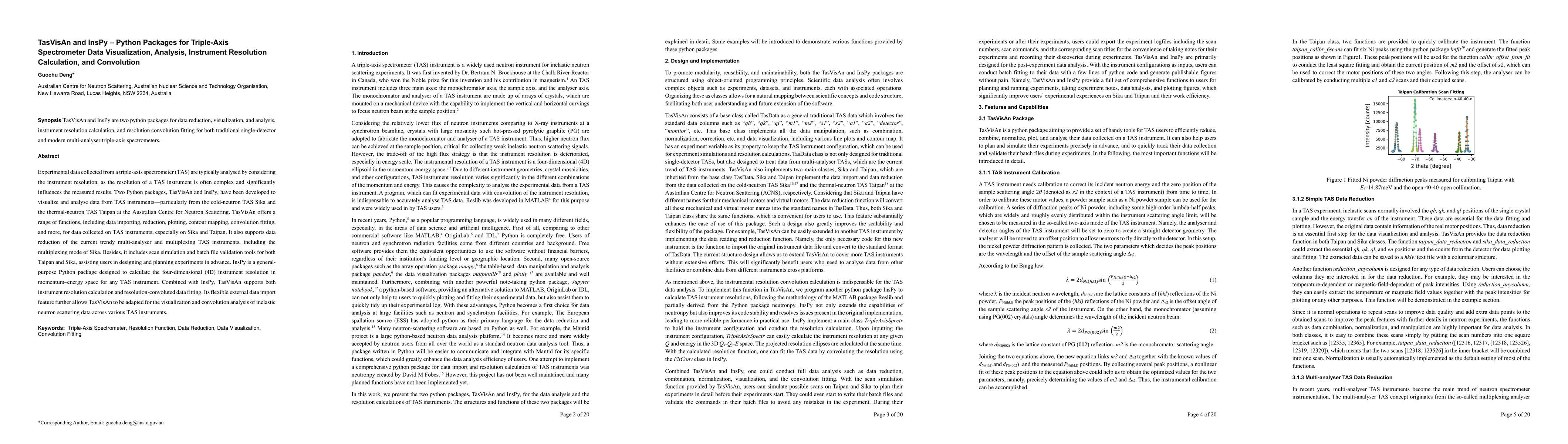 The TasVisAn package provides a novel technical contribution by providing a comprehensive set of tools for data reduction, visualization, and fitting on TAS instruments.