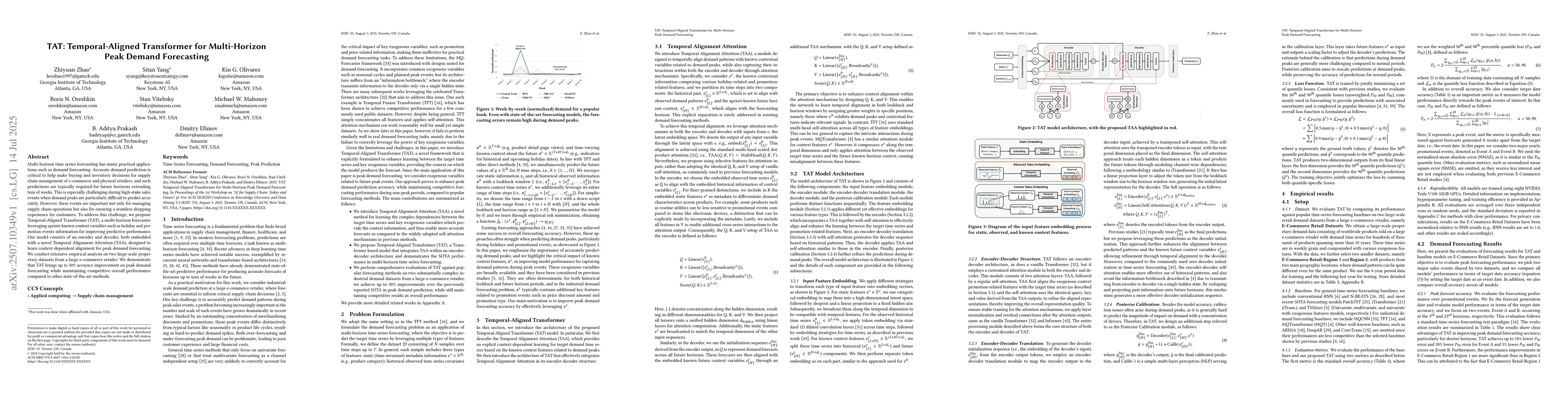 Multi-horizon time series forecasting has many practical applications such as demand forecasting. Accurate demand prediction is critical to help make buying and inventory decisions for supply chain management of e-commerce and physical retailers, and such predictions are typically required for future horizons extending tens of weeks. This is especially challenging during high-stake sales events when demand peaks are particularly difficult to predict accurately. However, these events are important not only for managing supply chain operations but also for ensuring a seamless shopping experience for customers. To address this challenge, we propose Temporal-Aligned Transformer (TAT), a multi-horizon forecaster leveraging apriori-known context variables such as holiday and promotion events information for improving predictive performance. Our model consists of an encoder and decoder, both embedded with a novel Temporal Alignment Attention (TAA), designed to learn context-dependent alignment for peak demand forecasting. We conduct extensive empirical analysis on two large-scale proprietary datasets from a large e-commerce retailer. We demonstrate that TAT brings up to 30% accuracy improvement on peak demand forecasting while maintaining competitive overall performance compared to other state-of-the-art methods.
