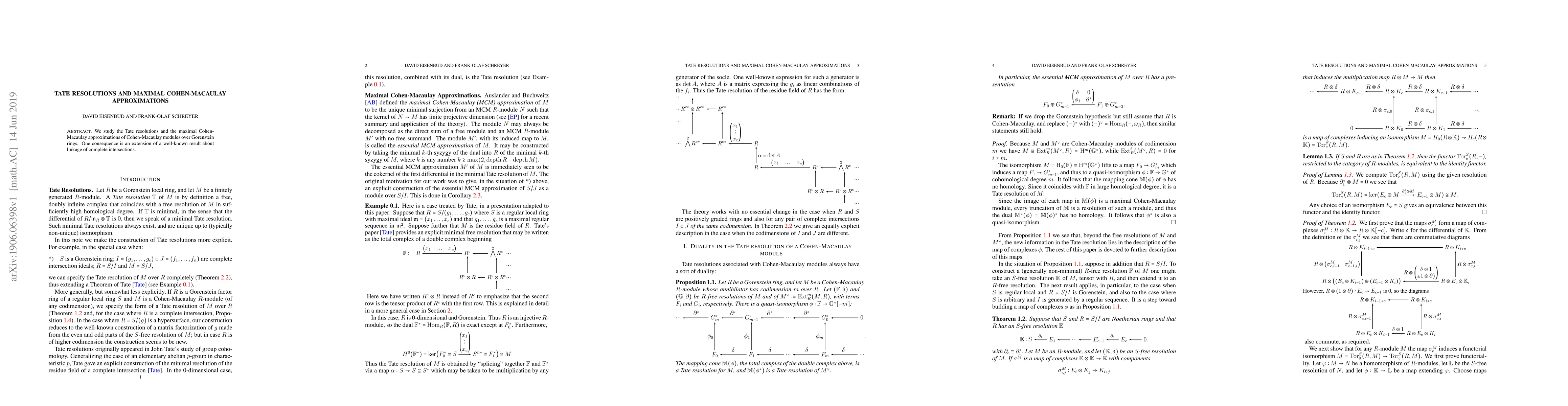Summary: This paper explores Tate resolutions and maximal Cohen-Macaulay approximations for Cohen-Macaulay modules over Gorenstein rings, leading to an extension of a classical linkage result concerning complete intersections.