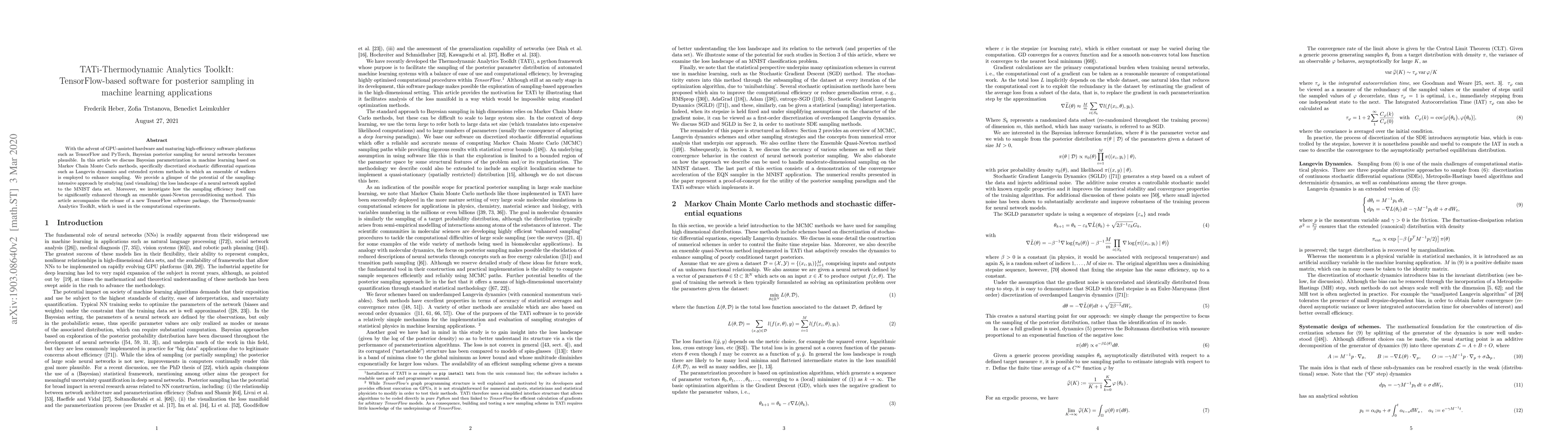 With the advent of GPU-assisted hardware and maturing high-efficiency software platforms such as TensorFlow and PyTorch, Bayesian posterior sampling for neural networks becomes plausible. In this article we discuss Bayesian parametrization in machine learning based on Markov Chain Monte Carlo methods, specifically discretized stochastic differential equations such as Langevin dynamics and extended system methods in which an ensemble of walkers is employed to enhance sampling. We provide a glimpse of the potential of the sampling-intensive approach by studying (and visualizing) the loss landscape of a neural network applied to the MNIST data set. Moreover, we investigate how the sampling efficiency itself can be significantly enhanced through an ensemble quasi-Newton preconditioning method. This article accompanies the release of a new TensorFlow software package, the Thermodynamic Analytics ToolkIt, which is used in the computational experiments.