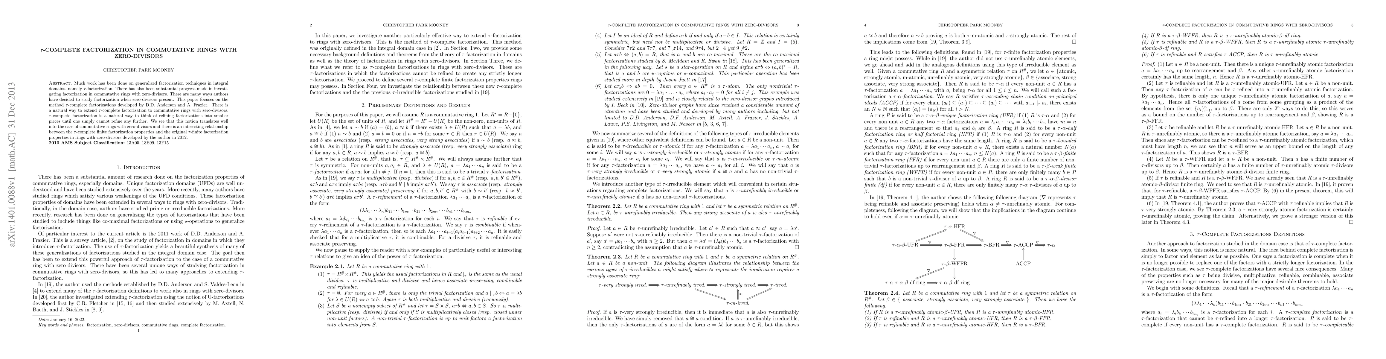 This paper explores the extension of $\tau$-complete factorization from integral domains to commutative rings with zero-divisors, demonstrating its applicability and the relationship between $\tau$-complete finite factorization properties and $\tau$-finite factorization properties.