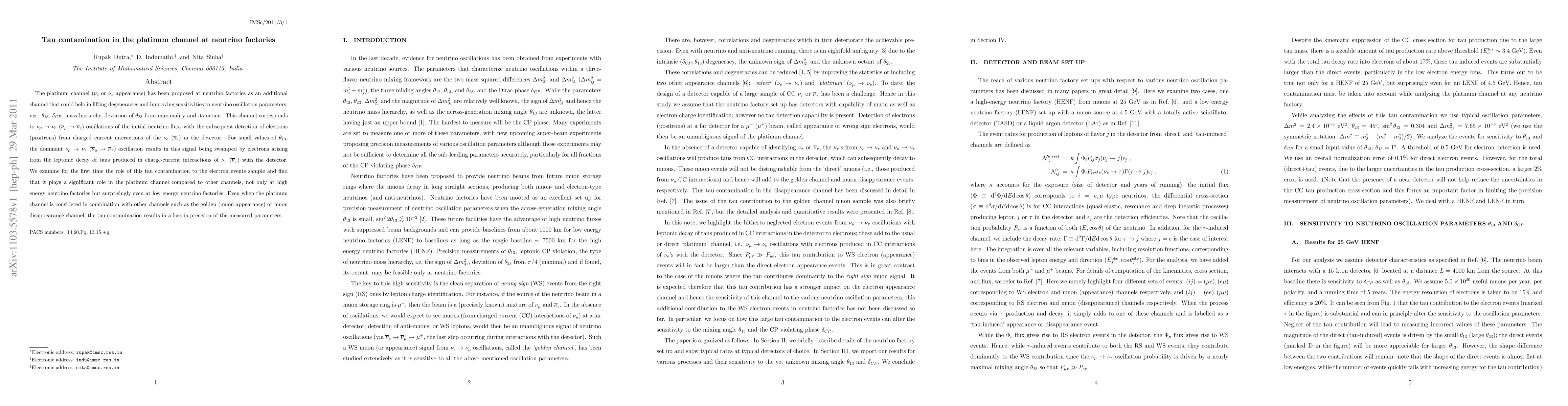 The platinum channel (\nu_e or anti-\nu_e appearance) has been proposed at neutrino factories as an additional channel that could help in lifting degeneracies and improving sensitivities to neutrino oscillation parameters, viz., \theta_{13}, \delta_{CP}, mass hierarchy, deviation of \theta_{23} from maximality and its octant. This channel corresponds to \nu_\mu -> \nu_e (or the corresponding anti-particle) oscillations of the initial neutrino flux, with the subsequent detection of (positrons) electrons from charged current interactions of the (anti-) \nu_e in the detector. For small values of \theta_{13}, the dominant \nu_\mu \to \nu_\tau (or corresponding anti-particle) oscillation results in this signal being swamped by electrons arising from the leptonic decay of taus produced in charge-current interactions of \nu_\tau (anti-\nu_\tau) with the detector. We examine for the first time the role of this tau contamination to the electron events sample and find that it plays a significant role in the platinum channel compared to other channels, not only at high energy neutrino factories but surprisingly even at low energy neutrino factories. Even when the platinum channel is considered in combination with other channels such as the golden (muon appearance) or muon disappearance channel, the tau contamination results in a loss in precision of the measured parameters.
