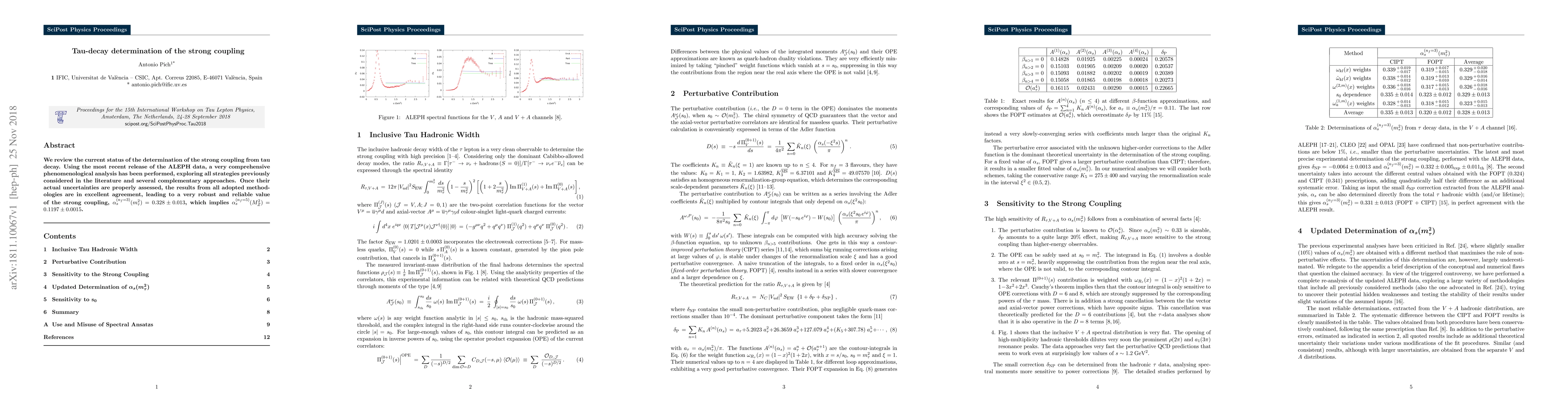 We review the current status of the determination of the strong coupling from tau decay. Using the most recent release of the ALEPH data, a very comprehensive phenomenological analysis has been performed, exploring all strategies previously considered in the literature and several complementary approaches. Once their actual uncertainties are properly assessed, the results from all adopted methodologies are in excellent agreement, leading to a very robust and reliable value of the strong coupling, $\alpha_s^{(n_f=3)}(m_\tau^2) = 0.328\pm 0.013$, which implies $\alpha_s^{(n_f=5)}(M_Z^2) = 0.1197\pm 0.0015$.