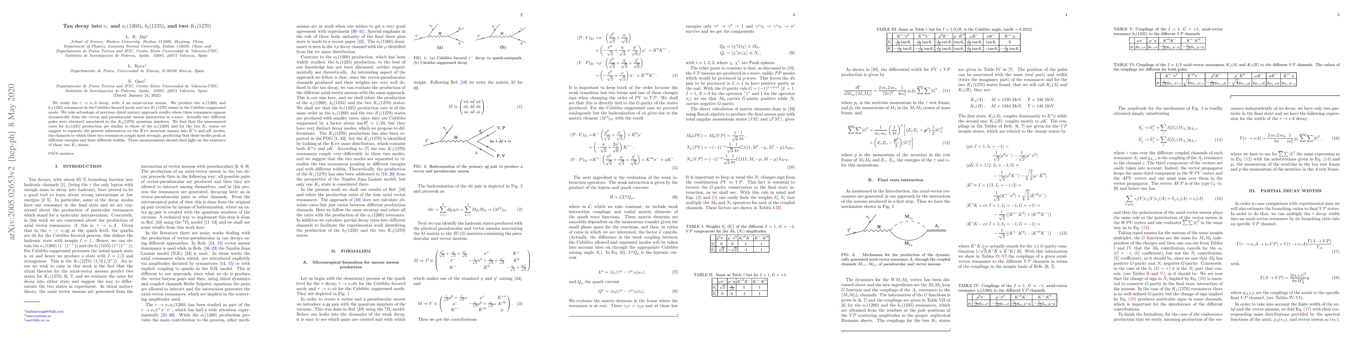 This paper investigates the decay of tau leptons into a tau neutrino and various axial-vector mesons, including $a_1(1260)$, $b_1(1235)$, and two $K_1(1270)$ states. It proposes that these resonances emerge dynamically from meson interactions and suggests separating the $\bar K \pi \pi$ invariant mass information into $\bar K^* \pi$ and $\rho K$ modes to better understand the distinct properties of the two $K_1$ states.