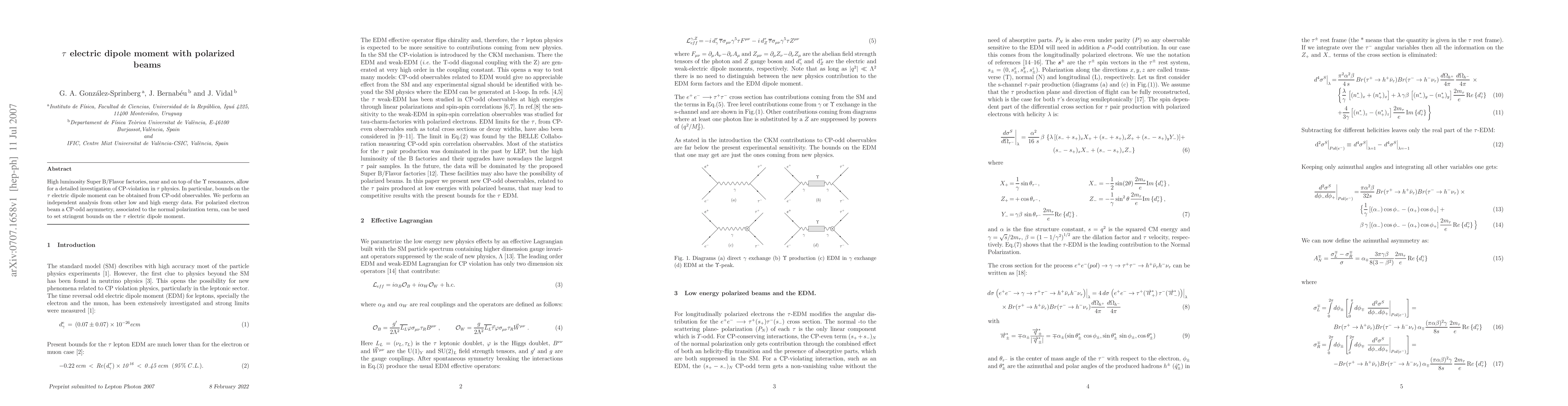 This paper investigates the potential of high luminosity Super B/Flavor factories to study CP-violation in $\tau$ physics, focusing on obtaining bounds for the $\tau$ electric dipole moment using CP-odd observables. It employs polarized electron beams to set stringent limits on the $\tau$ electric dipole moment through a CP-odd asymmetry.
