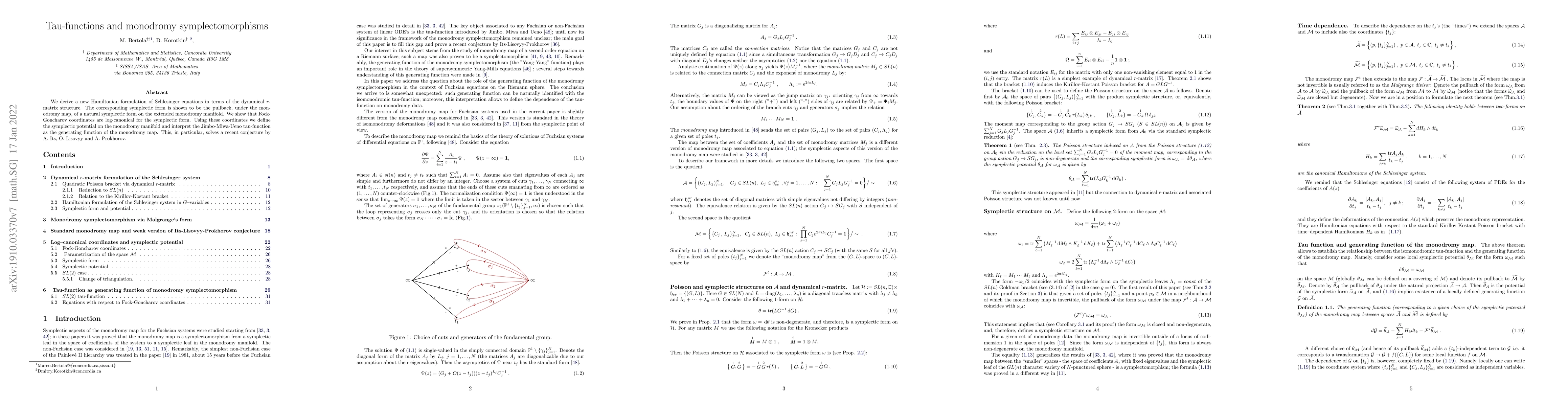 The paper presents a novel Hamiltonian formulation of Schlesinger equations leveraging the dynamical $r$-matrix structure and introduces a symplectic potential on the monodromy manifold, with the isomonodromic tau-function serving as the generating function for the monodromy map, thus solving a conjecture by Its, Lisovyy, and Prokhorov.