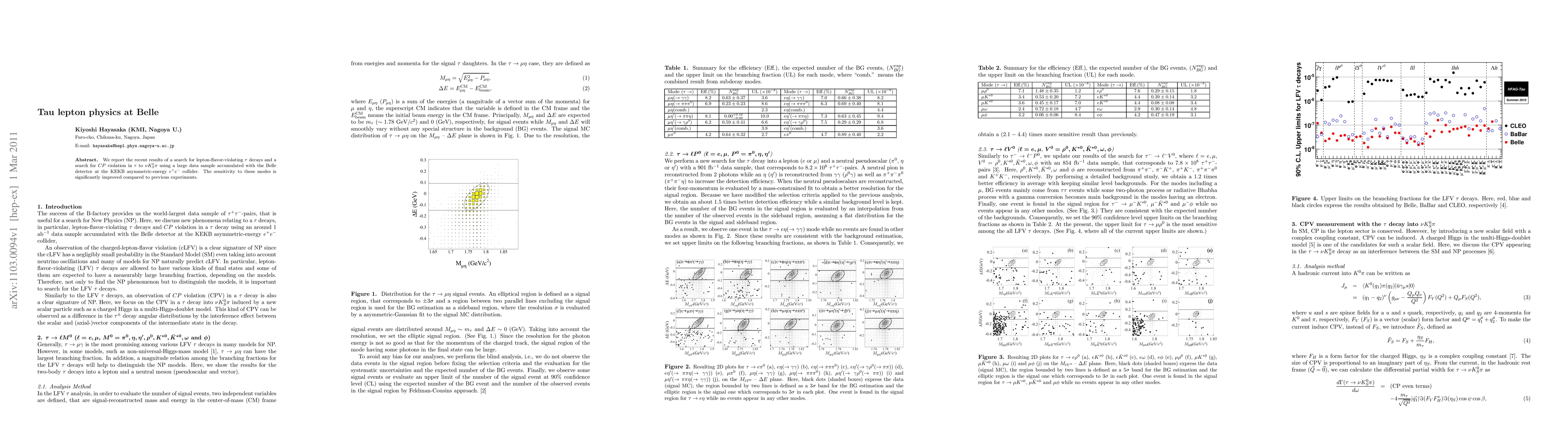 This paper presents enhanced sensitivity in lepton-flavor-violating tau decays and CP violation searches, surpassing previous experiments through detailed analysis of a large data sample with the Belle detector.