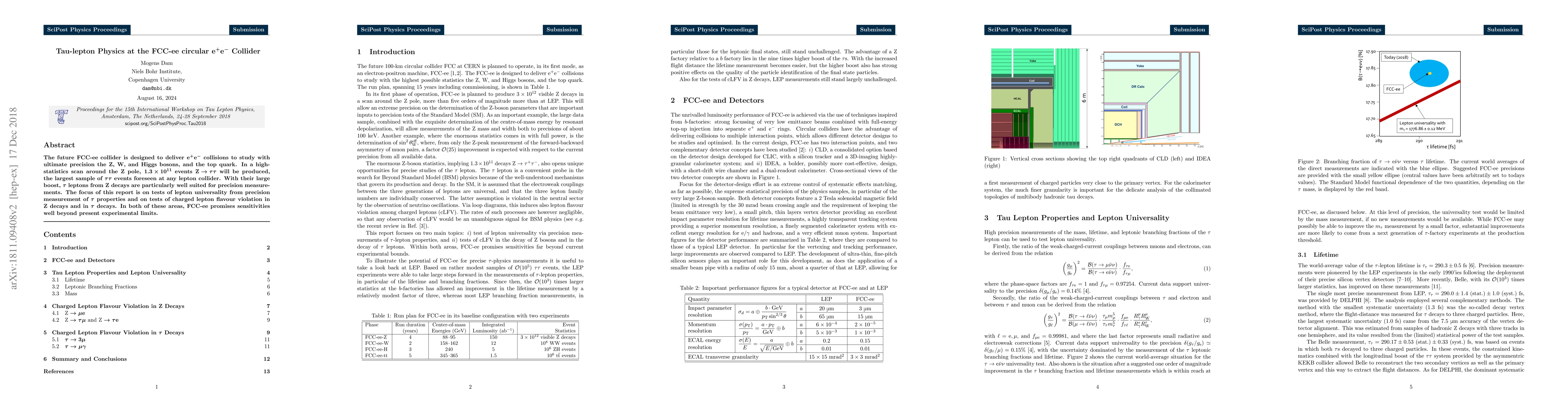 This paper discusses the potential of the FCC-ee collider to study tau-lepton physics with unprecedented precision, focusing on tests of lepton universality and charged lepton flavor violation through detailed measurements of tau properties in Z decay processes. FCC-ee's high-statistics environment promises to surpass current experimental limits in these areas.