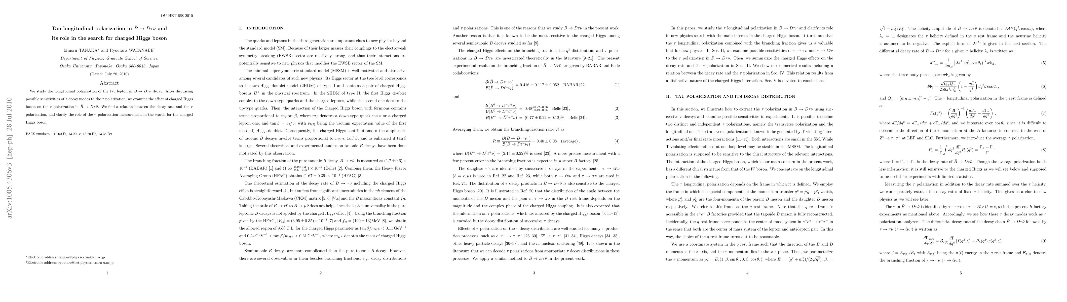 This paper investigates the longitudinal polarization of tau leptons in B -> D tau nu decays and its implications for detecting charged Higgs bosons. It establishes a connection between the decay rate and tau polarization, highlighting the significance of polarization measurements in charged Higgs searches.