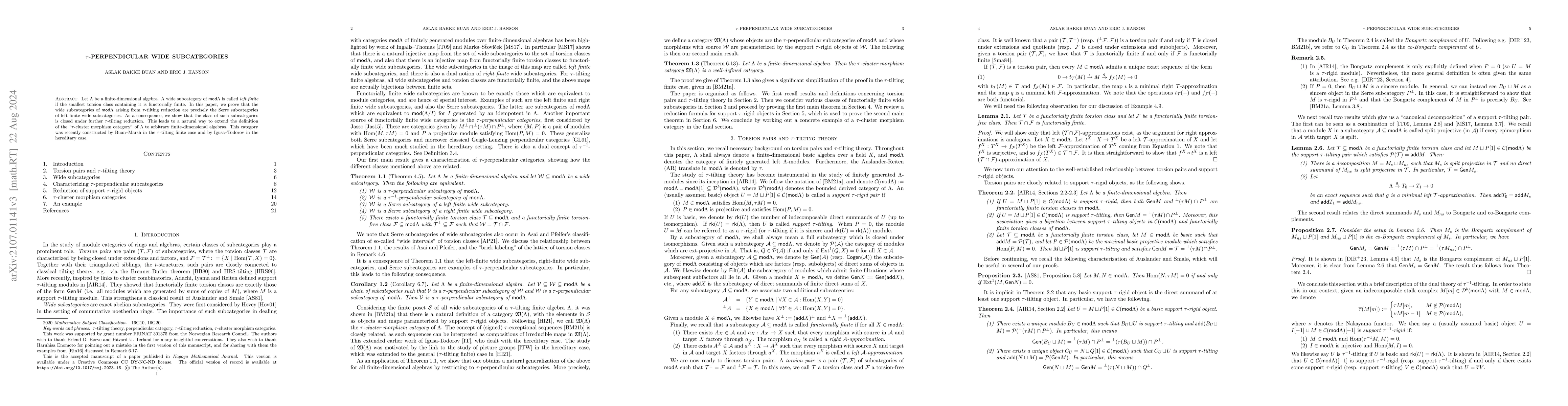 This paper proves that wide subcategories of $\mathsf{mod}\Lambda$ derived from $\tau$-tilting reduction are precisely the Serre subcategories of left finite wide subcategories, and shows that these subcategories are closed under further $\tau$-tilting reduction, leading to an extension of the $\tau$-cluster morphism category to all finite-dimensional algebras.