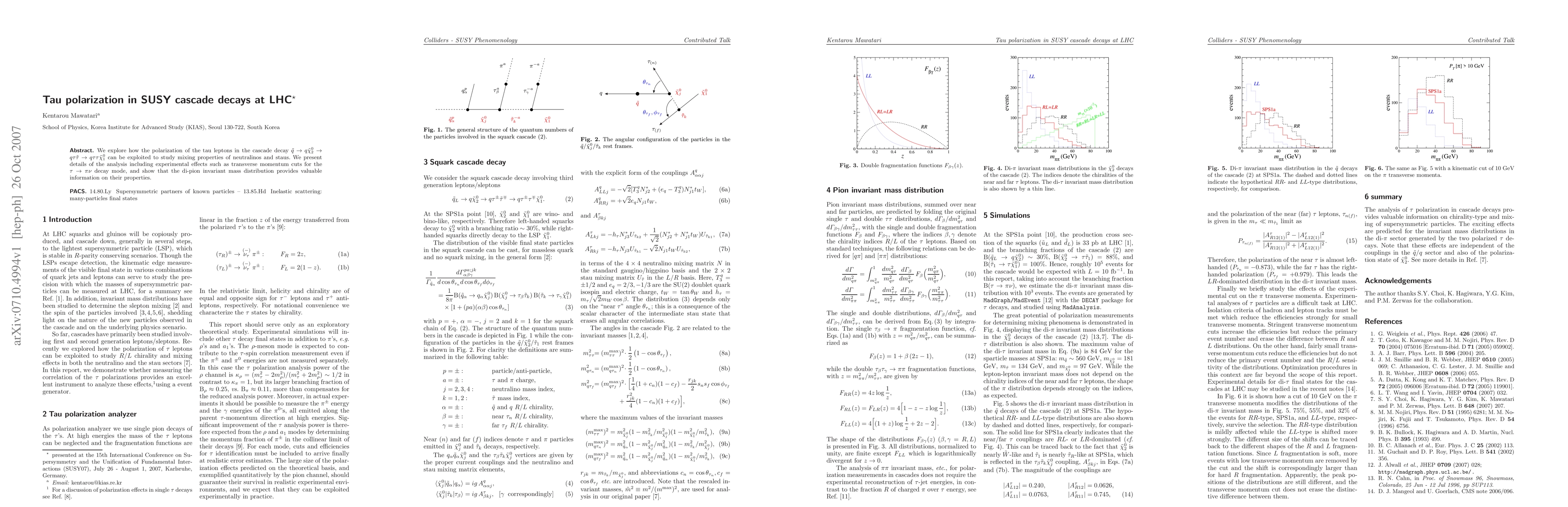 Researchers explore how tau polarization in LHC SUSY cascade decays can reveal mixing properties of neutralinos and staus, using the di-pion invariant mass distribution as a valuable tool.