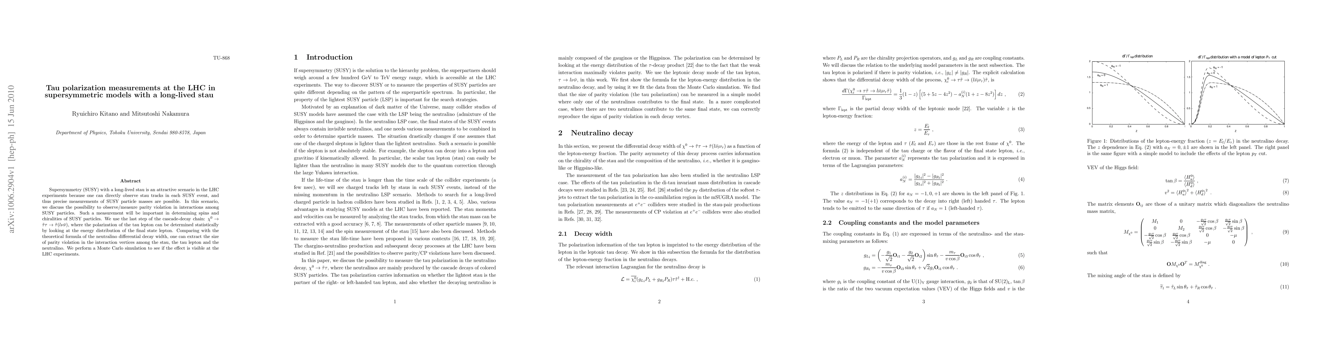 This paper investigates the potential for measuring parity violation in supersymmetric models featuring a long-lived stau at the LHC, using the polarization of tau leptons in decay chains. The study employs a Monte Carlo simulation to determine if these effects can be observed, which would help determine the spins and chiralities of SUSY particles.