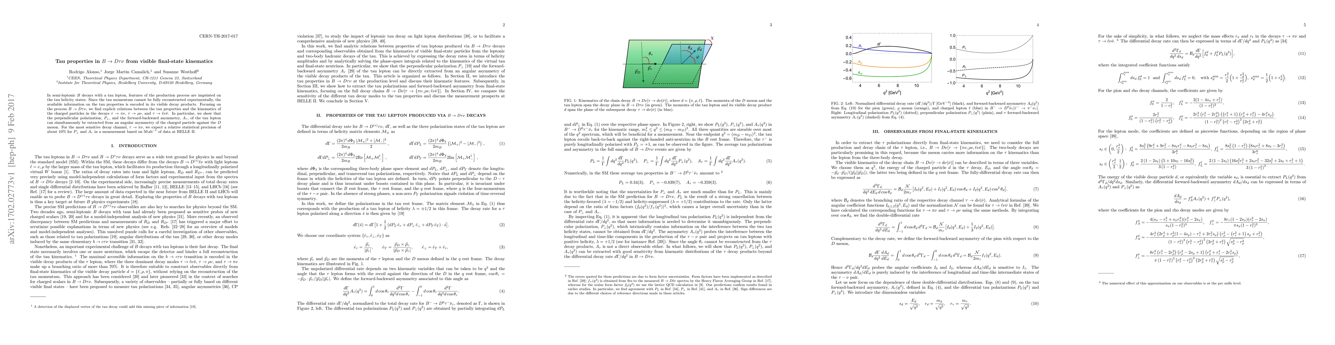 Researchers in $B o D au u$ decays found that tau lepton properties can be extracted from its visible decay products, offering a precise measurement of polarization and asymmetry with high statistical precision.
