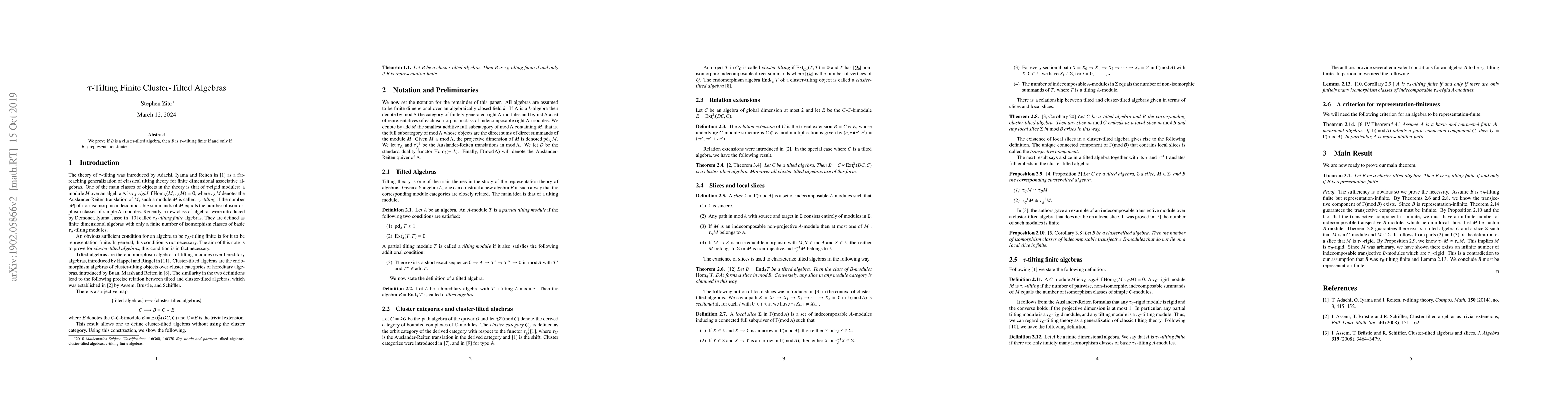 A cluster-tilted algebra is $ au$-tilting finite if and only if it is representation-finite, according to this research paper.