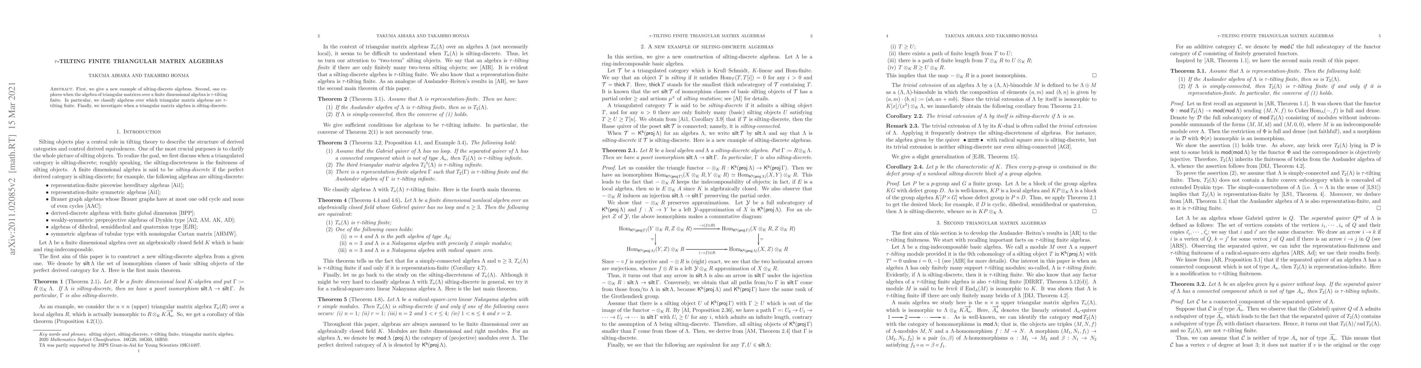 This paper introduces silting-discrete algebras with a focus on triangular matrix algebras over finite dimensional algebras, classifying those that are $\tau$-tilting finite and exploring conditions under which these algebras are silting-discrete.