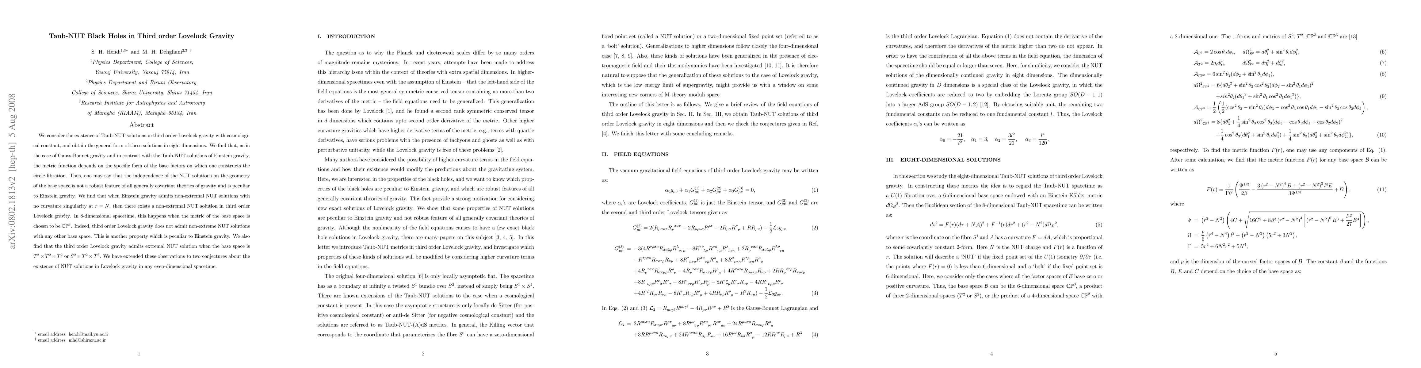 The research investigates Taub-NUT black hole solutions in third-order Lovelock gravity with a cosmological constant, deriving the general form of these solutions in eight dimensions.