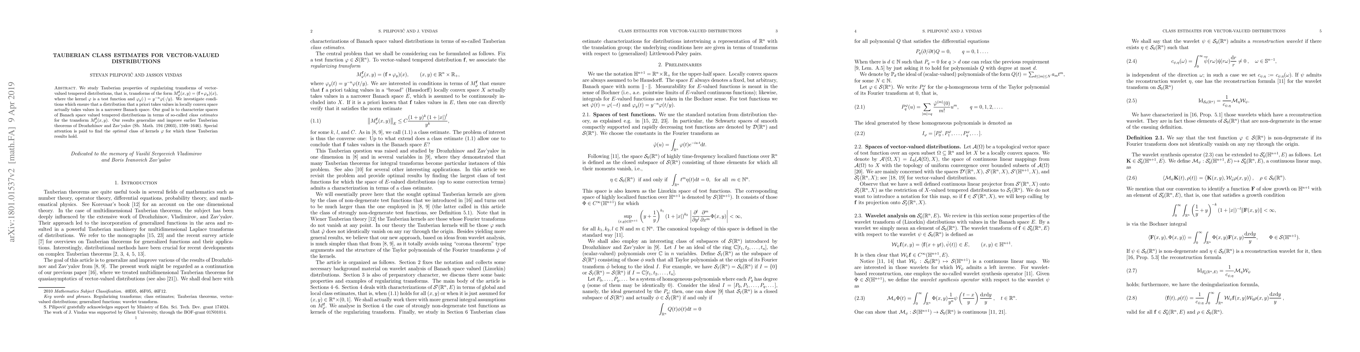 This paper studies Tauberian properties of vector-valued distributions and aims to characterize spaces of Banach space valued tempered distributions based on class estimates for a given transform.