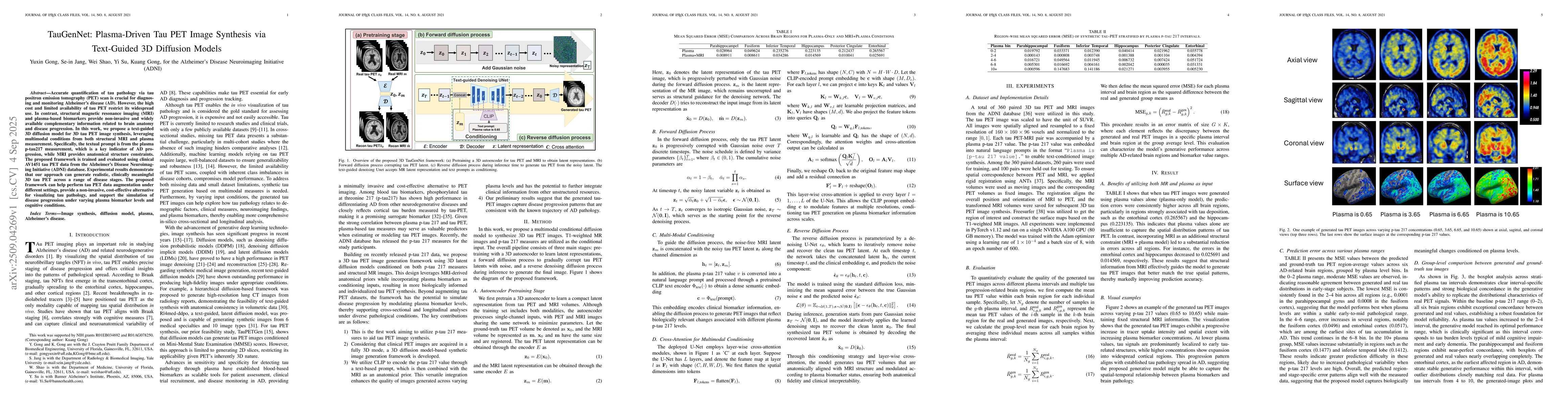 Accurate quantification of tau pathology via tau positron emission tomography (PET) scan is crucial for diagnosing and monitoring Alzheimer's disease (AD). However, the high cost and limited availability of tau PET restrict its widespread use. In contrast, structural magnetic resonance imaging (MRI) and plasma-based biomarkers provide non-invasive and widely available complementary information related to brain anatomy and disease progression. In this work, we propose a text-guided 3D diffusion model for 3D tau PET image synthesis, leveraging multimodal conditions from both structural MRI and plasma measurement. Specifically, the textual prompt is from the plasma p-tau217 measurement, which is a key indicator of AD progression, while MRI provides anatomical structure constraints. The proposed framework is trained and evaluated using clinical AV1451 tau PET data from the Alzheimer's Disease Neuroimaging Initiative (ADNI) database. Experimental results demonstrate that our approach can generate realistic, clinically meaningful 3D tau PET across a range of disease stages. The proposed framework can help perform tau PET data augmentation under different settings, provide a non-invasive, cost-effective alternative for visualizing tau pathology, and support the simulation of disease progression under varying plasma biomarker levels and cognitive conditions.