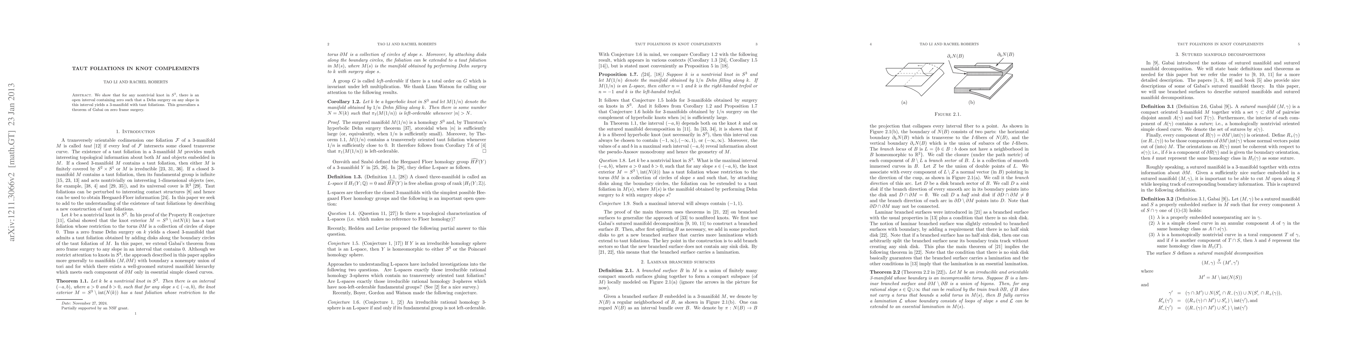 Researchers show that for any nontrivial knot in 3D space, a specific type of surgery can create a manifold with taut foliations, generalizing an existing theorem on frame surgery.