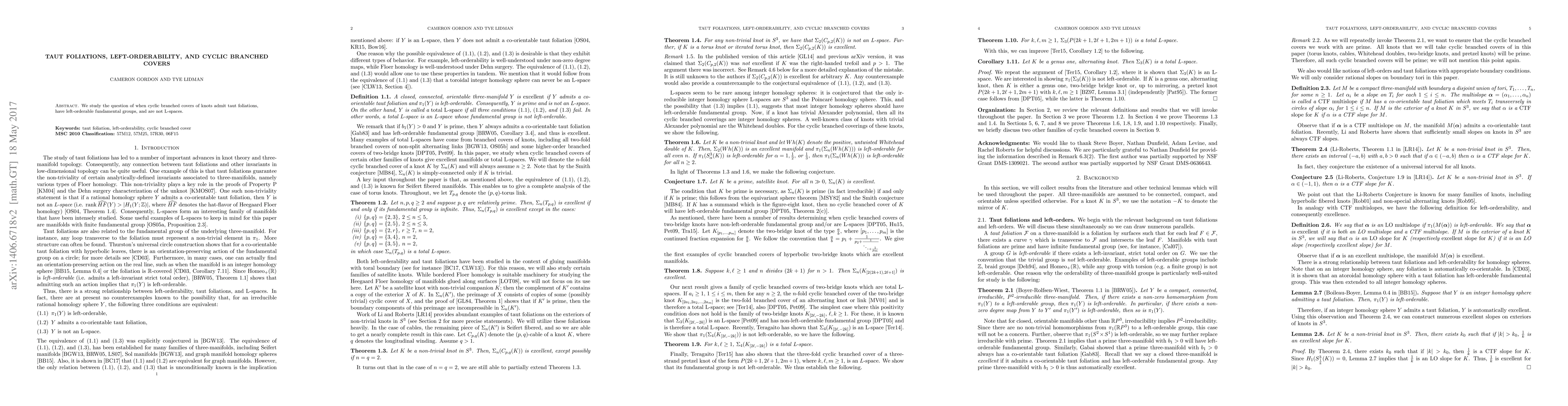 Summary: This paper investigates the conditions under which cyclic branched covers of knots exhibit taut foliations, possess left-orderable fundamental groups, and avoid being L-spaces. The findings contribute to understanding the topological and dynamical properties of these covers.