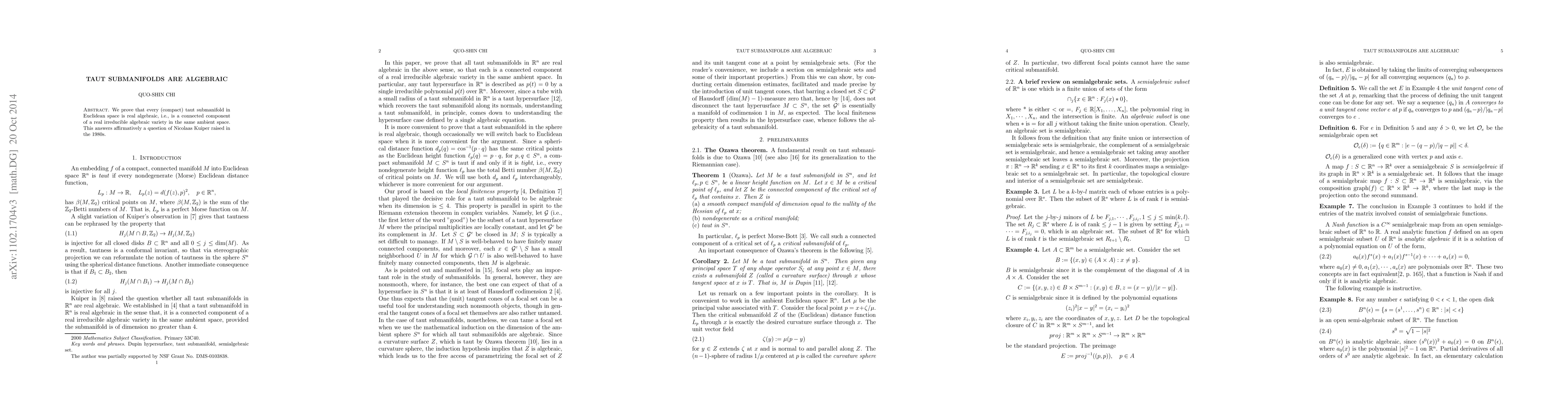 The paper presents a novel proof that taut submanifolds are real algebraic, leveraging advanced concepts from real algebraic geometry and differential topology.