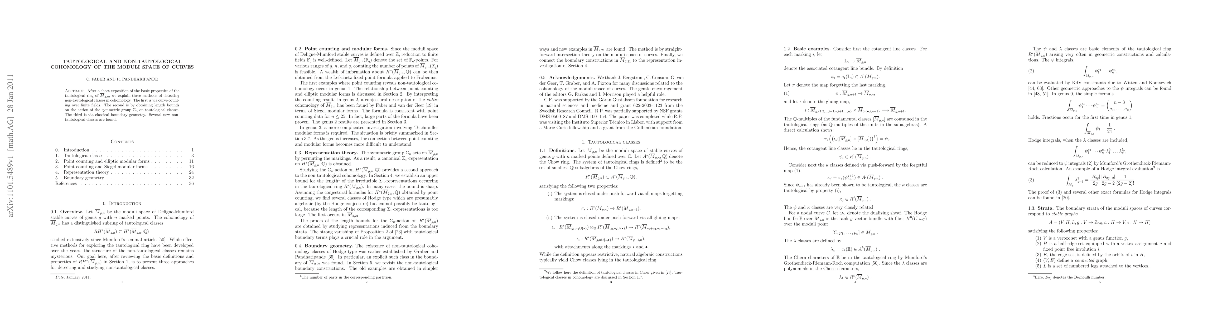 This paper discusses the cohomology of the moduli space of genus g curves, highlighting three methods to identify non-tautological classes: curve counting over finite fields, length bounds on symmetric group actions, and classical boundary geometry, resulting in the discovery of several new non-tautological classes.