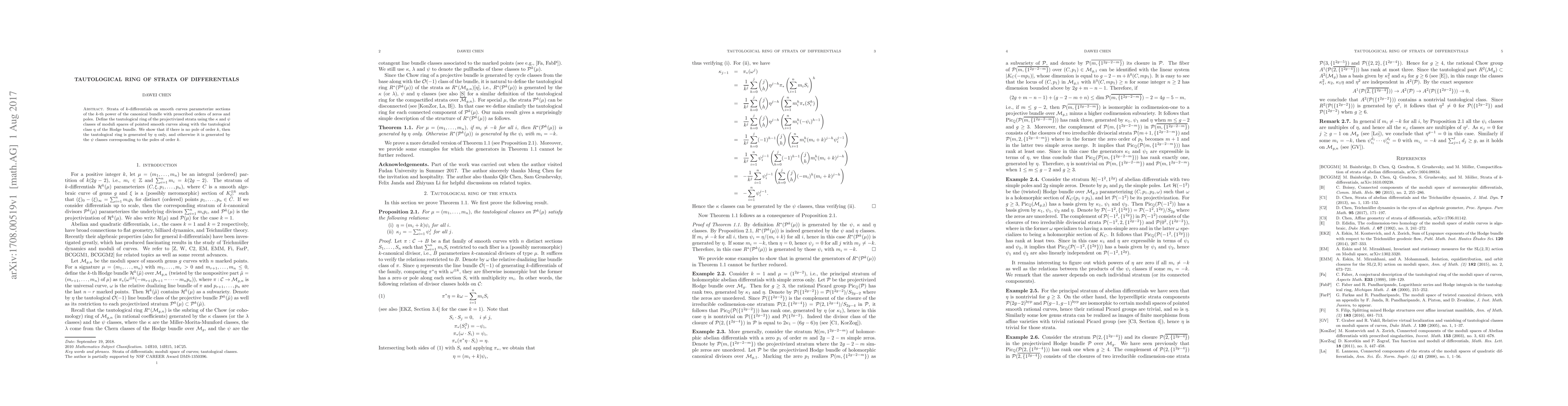 The paper defines the tautological ring of strata of $k$-differentials on smooth curves using $\kappa$, $\psi$ classes, and $\eta$. If no pole of order $k$ exists, the ring is generated solely by $\eta$; otherwise, it is generated by $\psi$ classes corresponding to the poles of order $k$.