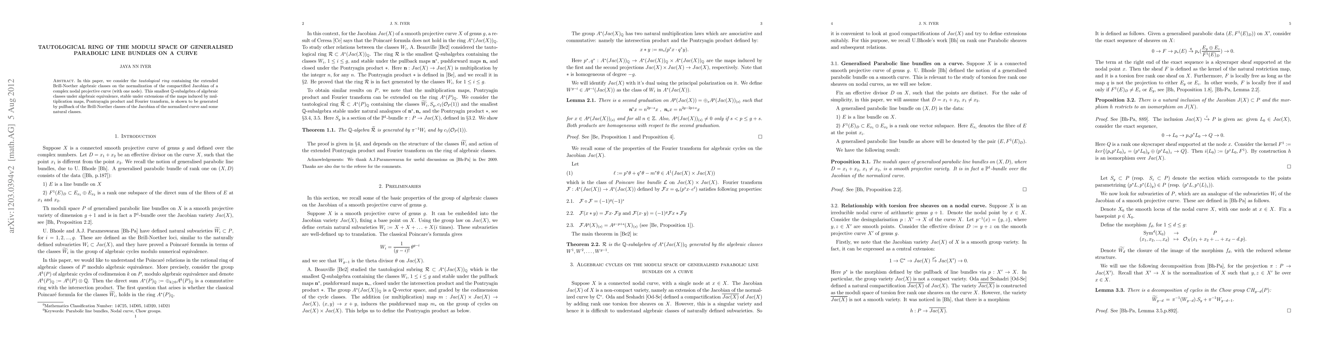 In this paper, we consider the tautological ring containing the extended Brill-Noether algebraic classes on the normalization of the compactified Jacobian of a complex nodal projective curve (with one node). This smallest $\Q$-subalgebra of algebraic classes under algebraic equivalence, stable under extensions of the maps induced by multiplication maps, Pontrayagin product and Fourier transform, is shown to be generated by pullback of the Brill-Noether classes of the Jacobian of the normalized curve and some natural classes.