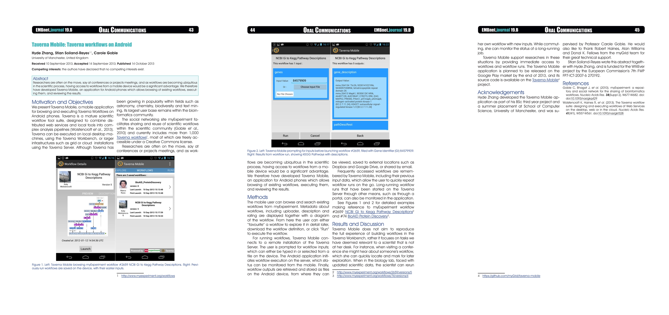 Researchers have developed Taverna Mobile, an Android app that allows scientists to browse, execute, and review workflows on-the-go, improving productivity at conferences, labs, and during commutes.