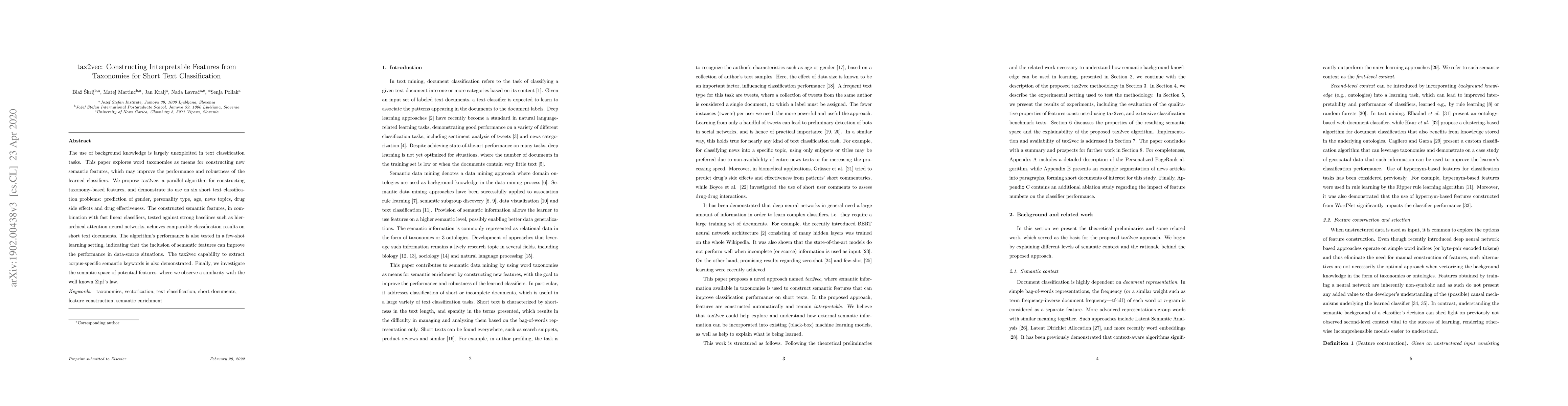 Researchers developed tax2vec, a method to create interpretable features from word taxonomies for short text classification, achieving comparable results with strong baselines and improving performance in data-scarce situations.