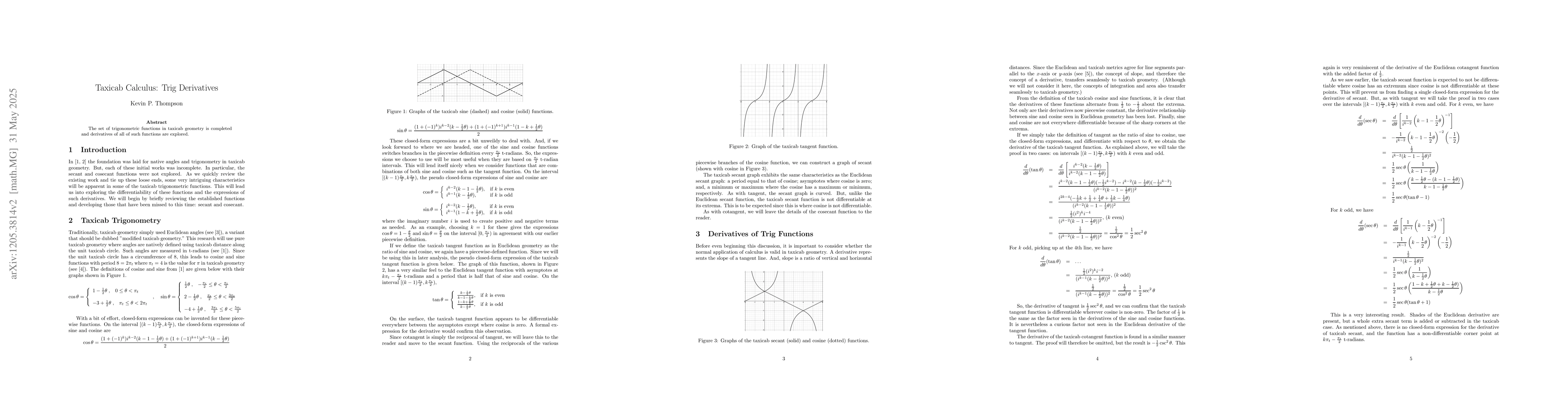 The set of trigonometric functions in taxicab geometry is completed and derivatives of all of the taxicab trigonometric functions are explored.