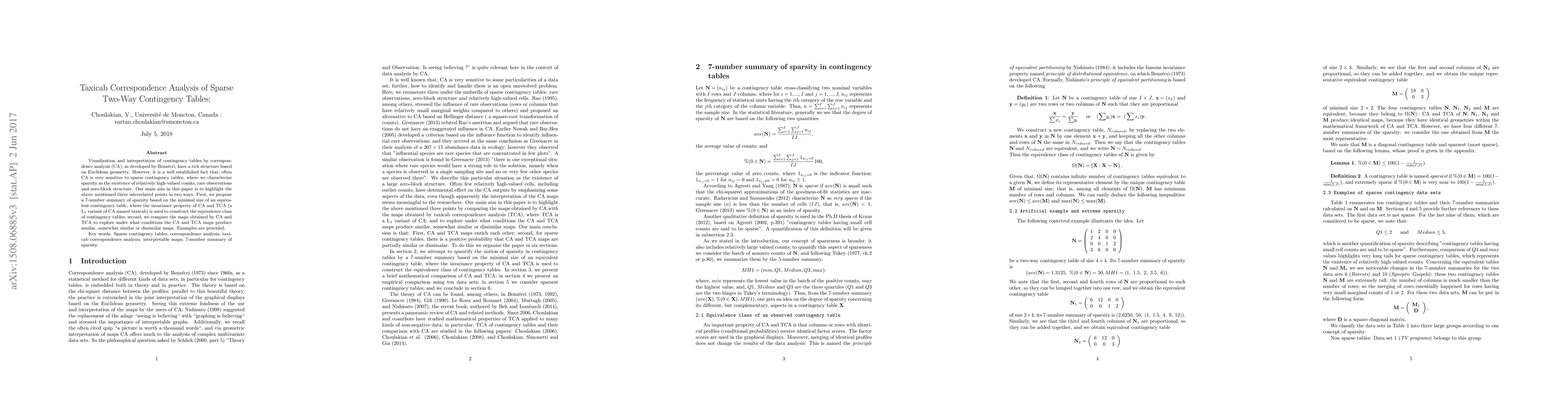 This paper compares Euclidean correspondence analysis (CA) with taxicab correspondence analysis (TCA) to explore the impact of different geometries on interpreting sparse contingency tables. The study highlights the phenomenon of parallax, where different geometries reveal hidden aspects of data, underscoring the importance of geometry in multivariate data analysis.