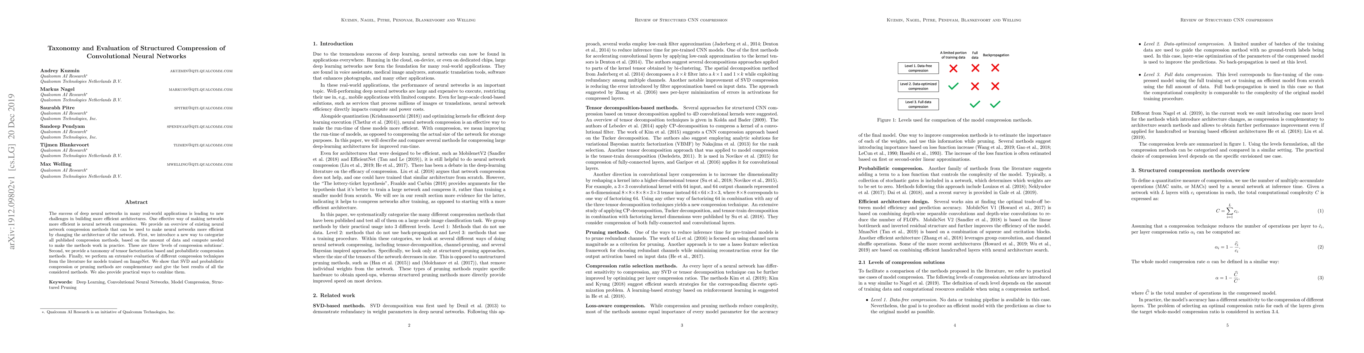 The success of deep neural networks in many real-world applications is leading to new challenges in building more efficient architectures. One effective way of making networks more efficient is neural network compression. We provide an overview of existing neural network compression methods that can be used to make neural networks more efficient by changing the architecture of the network. First, we introduce a new way to categorize all published compression methods, based on the amount of data and compute needed to make the methods work in practice. These are three 'levels of compression solutions'. Second, we provide a taxonomy of tensor factorization based and probabilistic compression methods. Finally, we perform an extensive evaluation of different compression techniques from the literature for models trained on ImageNet. We show that SVD and probabilistic compression or pruning methods are complementary and give the best results of all the considered methods. We also provide practical ways to combine them.