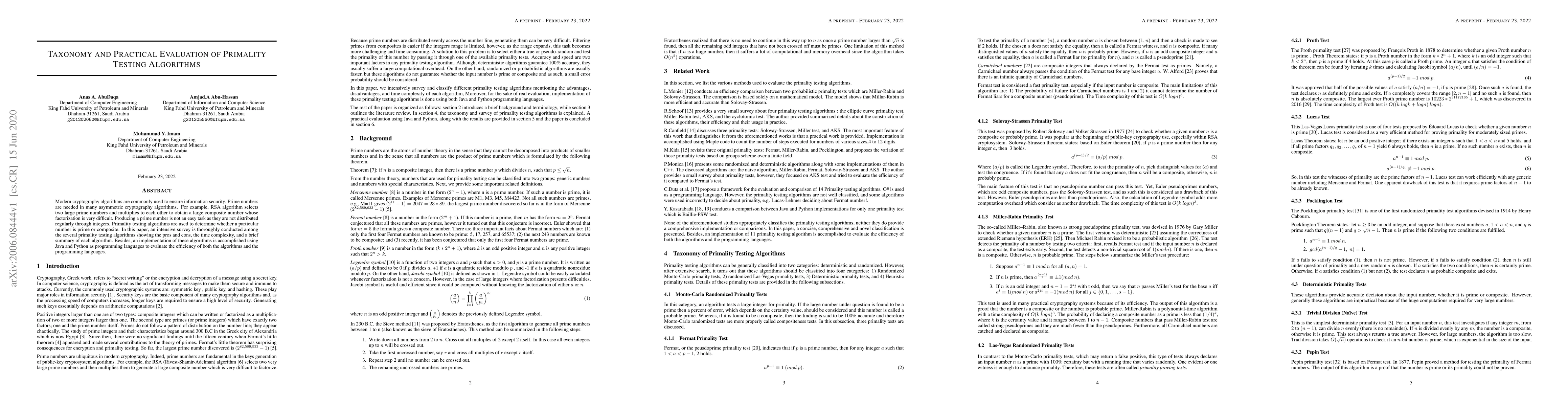 Modern cryptography algorithms are commonly used to ensure information security. Prime numbers are needed in many asymmetric cryptography algorithms. For example, RSA algorithm selects two large prime numbers and multiplies to each other to obtain a large composite number whose factorization is very difficult. Producing a prime number is not an easy task as they are not distributed regularly through integers. Primality testing algorithms are used to determine whether a particular number is prime or composite. In this paper, an intensive survey is thoroughly conducted among the several primality testing algorithms showing the pros and cons, the time complexity, and a brief summary of each algorithm. Besides, an implementation of these algorithms is accomplished using Java and Python as programming languages to evaluate the efficiency of both the algorithms and the programming languages.
