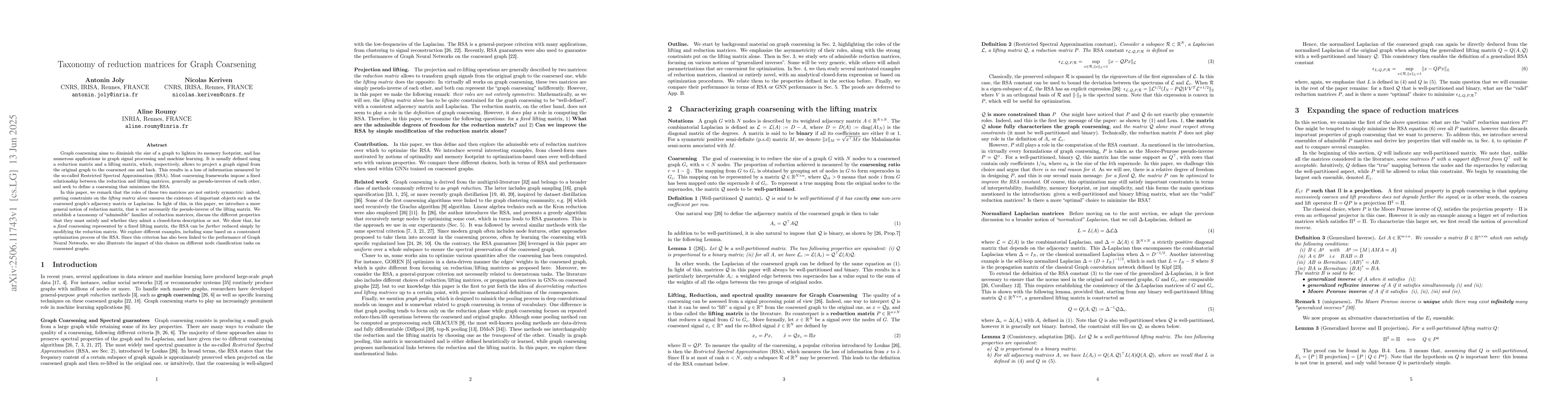 Graph coarsening aims to diminish the size of a graph to lighten its memory footprint, and has numerous applications in graph signal processing and machine learning. It is usually defined using a reduction matrix and a lifting matrix, which, respectively, allows to project a graph signal from the original graph to the coarsened one and back. This results in a loss of information measured by the so-called Restricted Spectral Approximation (RSA). Most coarsening frameworks impose a fixed relationship between the reduction and lifting matrices, generally as pseudo-inverses of each other, and seek to define a coarsening that minimizes the RSA. In this paper, we remark that the roles of these two matrices are not entirely symmetric: indeed, putting constraints on the lifting matrix alone ensures the existence of important objects such as the coarsened graph's adjacency matrix or Laplacian. In light of this, in this paper, we introduce a more general notion of reduction matrix, that is not necessarily the pseudo-inverse of the lifting matrix. We establish a taxonomy of ``admissible'' families of reduction matrices, discuss the different properties that they must satisfy and whether they admit a closed-form description or not. We show that, for a fixed coarsening represented by a fixed lifting matrix, the RSA can be further reduced simply by modifying the reduction matrix. We explore different examples, including some based on a constrained optimization process of the RSA. Since this criterion has also been linked to the performance of Graph Neural Networks, we also illustrate the impact of this choices on different node classification tasks on coarsened graphs.