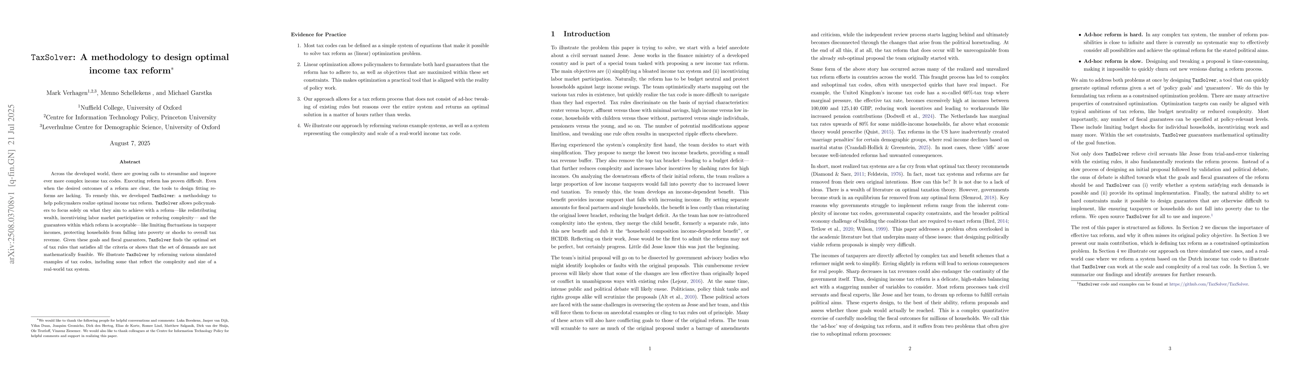 Across the developed world, there are growing calls to streamline and improve ever more complex income tax codes. Executing reform has proven difficult. Even when the desired outcomes of a reform are clear, the tools to design fitting reforms are lacking. To remedy this, we developed \texttt{TaxSolver}: a methodology to help policymakers realize optimal income tax reform. \texttt{TaxSolver} allows policymakers to focus solely on what they aim to achieve with a reform -- like redistributing wealth, incentivizing labor market participation or reducing complexity -- and the guarantees within which reform is acceptable -- like limiting fluctuations in taxpayer incomes, protecting households from falling into poverty or shocks to overall tax revenue. Given these goals and fiscal guarantees, \texttt{TaxSolver} finds the optimal set of tax rules that satisfies all the criteria or shows that the set of demands are not mathematically feasible. We illustrate \texttt{TaxSolver} by reforming various simulated examples of tax codes, including some that reflect the complexity and size of a real-world tax system.
