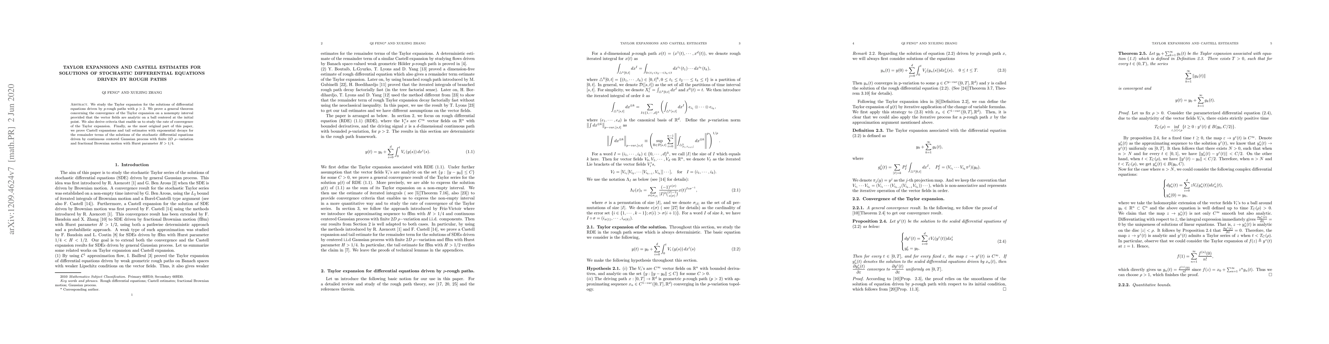 This paper investigates Taylor expansions for solutions of stochastic differential equations driven by $p$-rough paths with $p>2$, proving convergence under analytic vector fields. It also introduces Castell expansions and tail estimates with exponential decay for remainder terms in the context of continuous Gaussian processes and fractional Brownian motion with $H>1/4$.