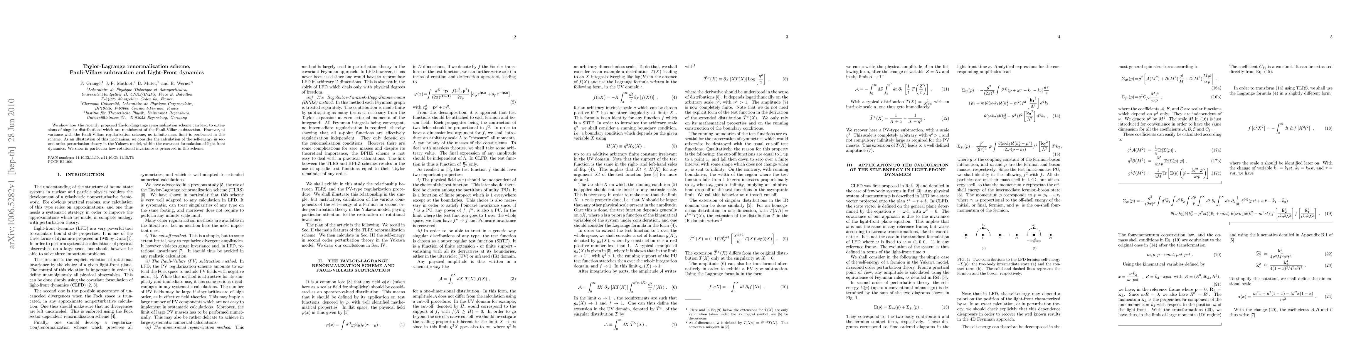 We show how the recently proposed Taylor-Lagrange renormalization scheme can lead to extensions of singular distributions which are reminiscent of the Pauli-Villars subtraction. However, at variance with the Pauli-Villars regularization scheme, no infinite mass limit is performed in this scheme. As an illustration of this mechanism, we consider the calculation of the self-energy in second order perturbation theory in the Yukawa model, within the covariant formulation of light-front dynamics. We show in particular how rotational invariance is preserved in this scheme.