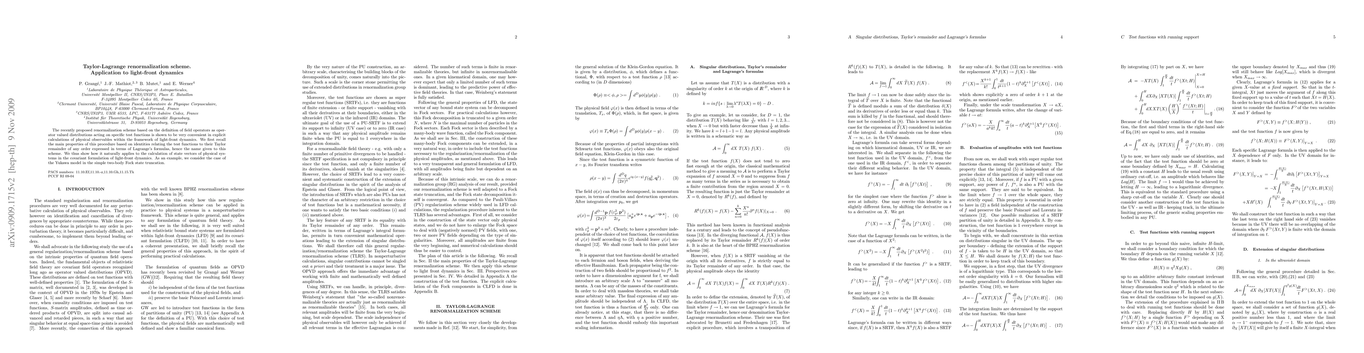 The recently proposed renormalization scheme based on the definition of field operators as operator valued distributions acting on specific test functions is shown to be very convenient in explicit calculations of physical observables within the framework of light-front dynamics. We first recall the main properties of this procedure based on identities relating the test functions to their Taylor remainder of any order expressed in terms of Lagrange's formulae, hence the name given to this scheme. We thus show how it naturally applies to the calculation of state vectors of physical systems in the covariant formulation of light-front dynamics. As an example, we consider the case of the Yukawa model in the simple two-body Fock state truncation.