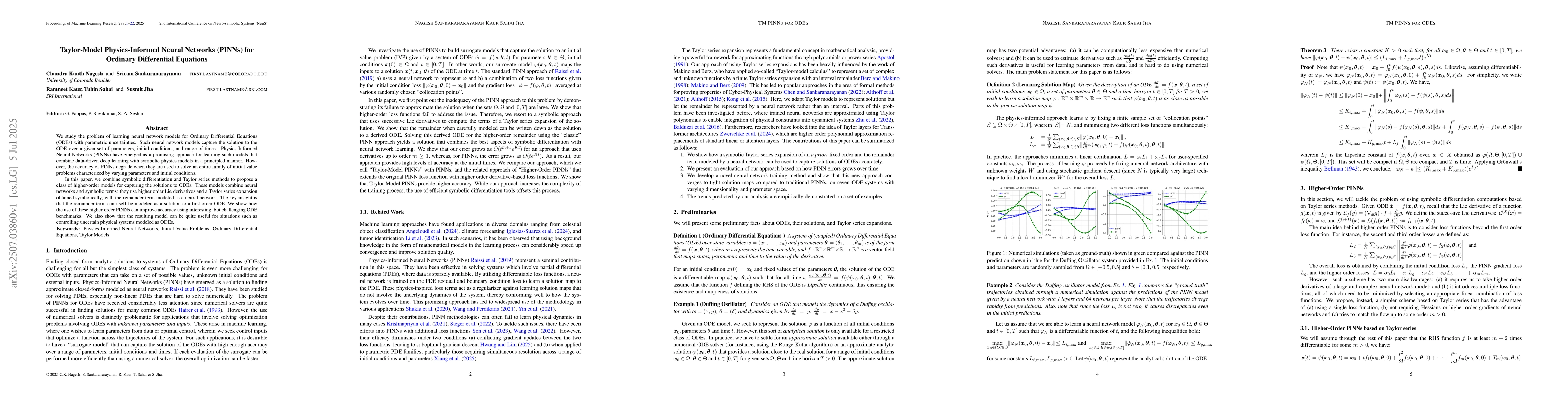 We study the problem of learning neural network models for Ordinary Differential Equations (ODEs) with parametric uncertainties. Such neural network models capture the solution to the ODE over a given set of parameters, initial conditions, and range of times. Physics-Informed Neural Networks (PINNs) have emerged as a promising approach for learning such models that combine data-driven deep learning with symbolic physics models in a principled manner. However, the accuracy of PINNs degrade when they are used to solve an entire family of initial value problems characterized by varying parameters and initial conditions. In this paper, we combine symbolic differentiation and Taylor series methods to propose a class of higher-order models for capturing the solutions to ODEs. These models combine neural networks and symbolic terms: they use higher order Lie derivatives and a Taylor series expansion obtained symbolically, with the remainder term modeled as a neural network. The key insight is that the remainder term can itself be modeled as a solution to a first-order ODE. We show how the use of these higher order PINNs can improve accuracy using interesting, but challenging ODE benchmarks. We also show that the resulting model can be quite useful for situations such as controlling uncertain physical systems modeled as ODEs.