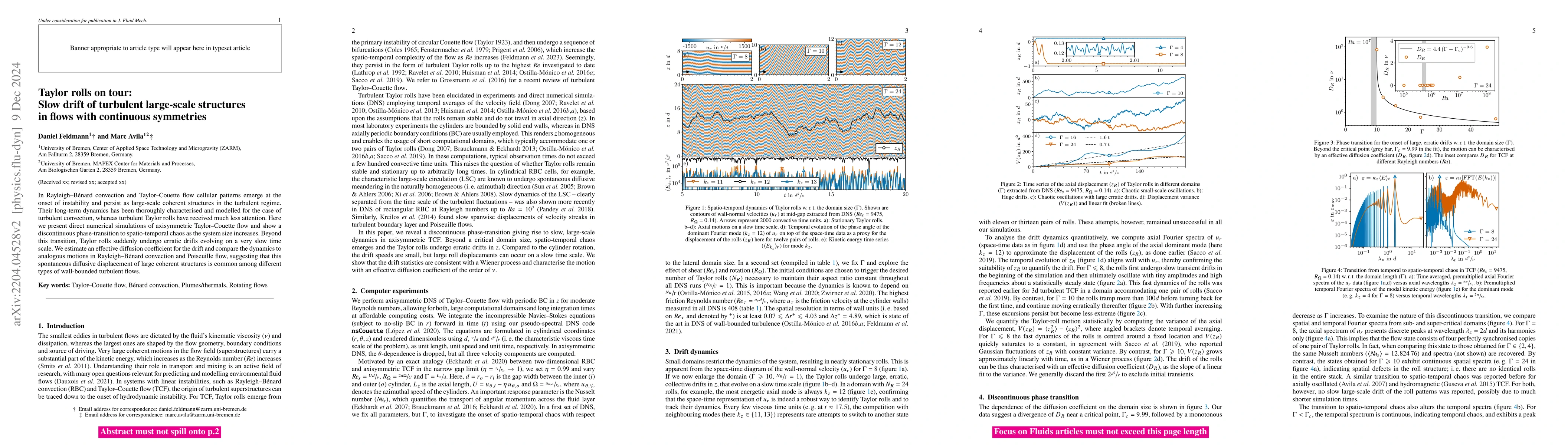 Turbulent flows exhibit wide ranges of time and length scales. Their small-scale dynamics is well understood, but less is known about the mechanisms governing the dynamics of large-scale coherent motions in the flow field. We perform direct numerical simulations of axisymmetric Taylor--Couette flow and show that beyond a critical domain size, the largest structures (turbulent Taylor rolls) undergo erratic drifts evolving on a viscous time scale. We estimate a diffusion coefficient for the drift and compare the dynamics to analogous motions in Rayleigh--B\'enard convection and Poiseuille flow. We argue that viscous processes govern the lateral displacement of large coherent structures in wall-bounded turbulent flows.