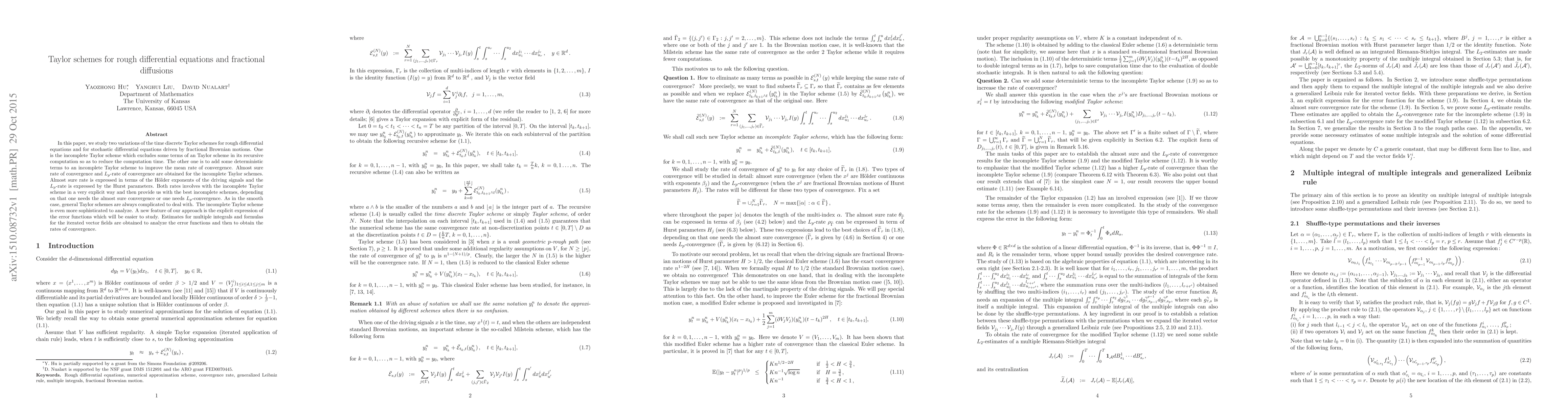 In this paper, we study two variations of the time discrete Taylor schemes for rough differential equations and for stochastic differential equations driven by fractional Brownian motions. One is the incomplete Taylor scheme which excludes some terms of an Taylor scheme in its recursive computation so as to reduce the computation time. The other one is to add some deterministic terms to an incomplete Taylor scheme to improve the mean rate of convergence. Almost sure rate of convergence and $L_p$-rate of convergence are obtained for the incomplete Taylor schemes. Almost sure rate is expressed in terms of the H\"older exponents of the driving signals and the $L_p$-rate is expressed by the Hurst parameters. Both rates involves with the incomplete Taylor scheme in a very explicit way and then provide us with the best incomplete schemes, depending on that one needs the almost sure convergence or one needs $L_p$-convergence. As in the smooth case, general Taylor schemes are always complicated to deal with. The incomplete Taylor scheme is even more sophisticated to analyze. A new feature of our approach is the explicit expression of the error functions which will be easier to study. Estimates for multiple integrals and formulas for the iterated vector fields are obtained to analyze the error functions and then to obtain the rates of convergence.