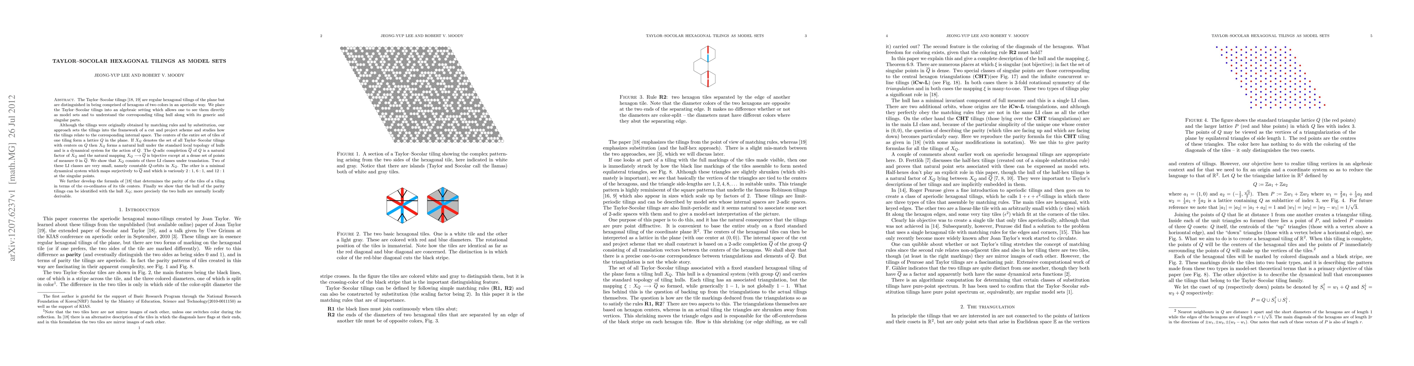 The Taylor-Socolar tilings are regular hexagonal tilings of the plane but are distinguished in being comprised of hexagons of two colors in an aperiodic way. We place the Taylor-Socolar tilings into an algebraic setting which allows one to see them directly as model sets and to understand the corresponding tiling hull along with its generic and singular parts. Although the tilings were originally obtained by matching rules and by substitution, our approach sets the tilings into the framework of a cut and project scheme and studies how the tilings relate to the corresponding internal space. The centers of the entire set of tiles of one tiling form a lattice $Q$ in the plane. If $X_Q$ denotes the set of all Taylor-Socolar tilings with centers on $Q$ then $X_Q$ forms a natural hull under the standard local topology of hulls and is a dynamical system for the action of $Q$. The $Q$-adic completion $\bar{Q}$ of $Q$ is a natural factor of $X_Q$ and the natural mapping $X_Q \longrightarrow \bar{Q}$ is bijective except at a dense set of points of measure 0 in $\bar{Q}$. We show that $X_Q$ consists of three LI classes under translation. Two of these LI classes are very small, namely countable $Q$-orbits in $X_Q$. The other is a minimal dynamical system which maps surjectively to $\bar{Q}$ and which is variously $2:1$, $6:1$, and $12:1$ at the singular points. We further develop the formula of Socolar and Taylor (2011) that determines the parity of the tiles of a tiling in terms of the co-ordinates of its tile centers. Finally we show that the hull of the parity tilings can be identified with the hull $X_Q$; more precisely the two hulls are mutually locally derivable.