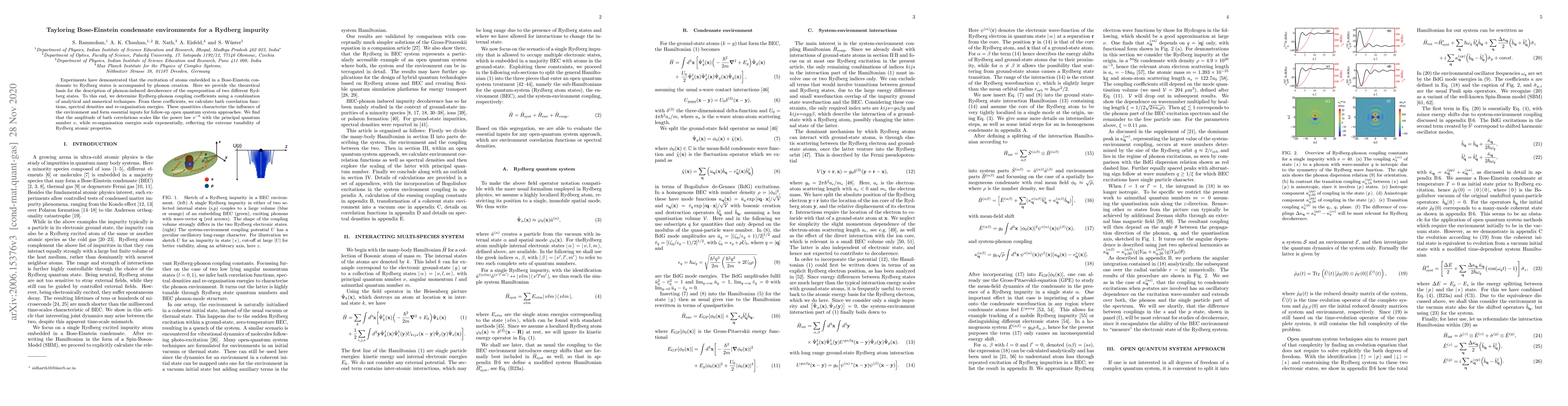 This study develops a theoretical framework to understand how Rydberg atoms within Bose-Einstein condensates interact with phonons, affecting quantum coherence. It reveals that these interactions can be precisely controlled by tuning atomic properties, making Rydberg-impurity systems highly adaptable for quantum research.
