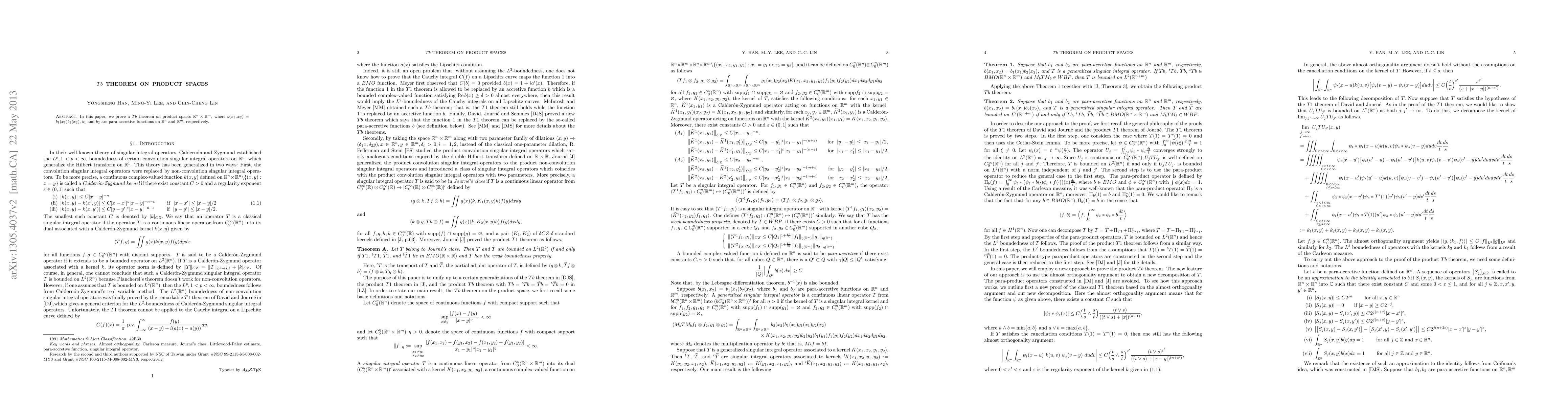 In this paper, we prove a $Tb$ theorem on product spaces $\Bbb R^n\times \Bbb R^m$, where $b(x_1,x_2)=b_1(x_1)b_2(x_2)$, $b_1$ and $b_2$ are para-accretive functions on $\Bbb R^n$ and $\Bbb R^m$, respectively.