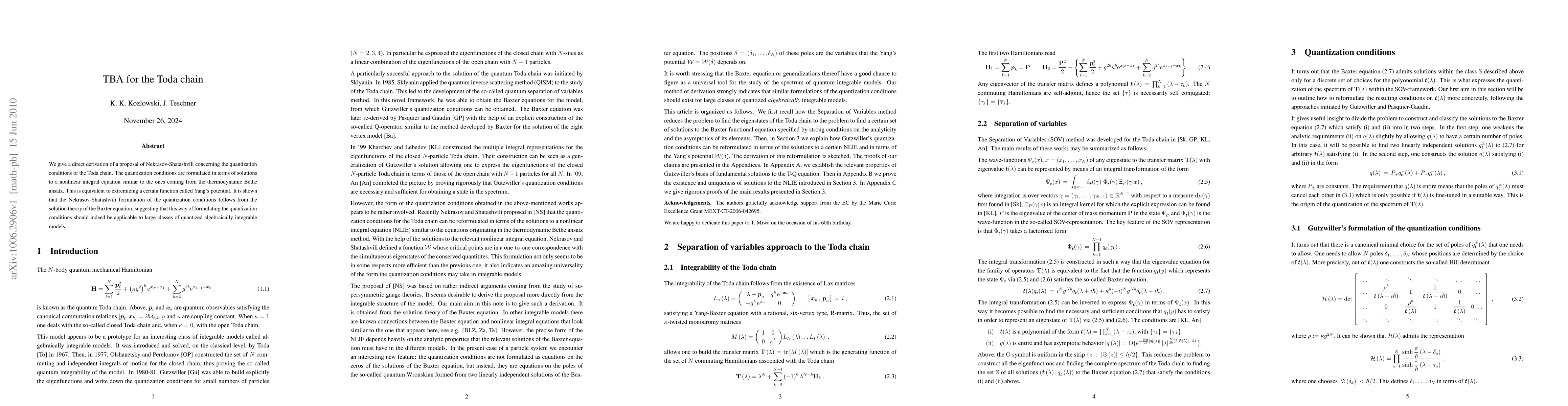 We give a direct derivation of a proposal of Nekrasov-Shatashvili concerning the quantization conditions of the Toda chain. The quantization conditions are formulated in terms of solutions to a nonlinear integral equation similar to the ones coming from the thermodynamic Bethe ansatz. This is equivalent to extremizing a certain function called Yang's potential. It is shown that the Nekrasov-Shatashvili formulation of the quantization conditions follows from the solution theory of the Baxter equation, suggesting that this way of formulating the quantization conditions should indeed be applicable to large classes of quantized algebraically integrable models.