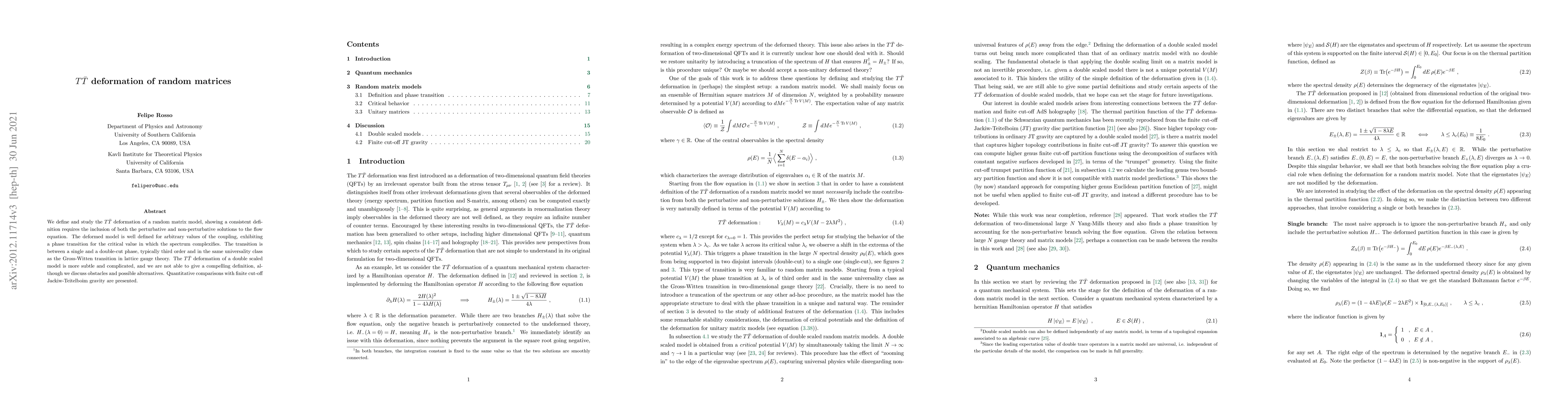 We define and study the $T\bar{T}$ deformation of a random matrix model, showing a consistent definition requires the inclusion of both the perturbative and non-perturbative solutions to the flow equation. The deformed model is well defined for arbitrary values of the coupling, exhibiting a phase transition for the critical value in which the spectrum complexifies. The transition is between a single and a double-cut phase, typically third order and in the same universality class as the Gross-Witten transition in lattice gauge theory. The $T\bar{T}$ deformation of a double scaled model is more subtle and complicated, and we are not able to give a compelling definition, although we discuss obstacles and possible alternatives. Preliminary comparisons with finite cut-off Jackiw-Teitelboim gravity are presented.