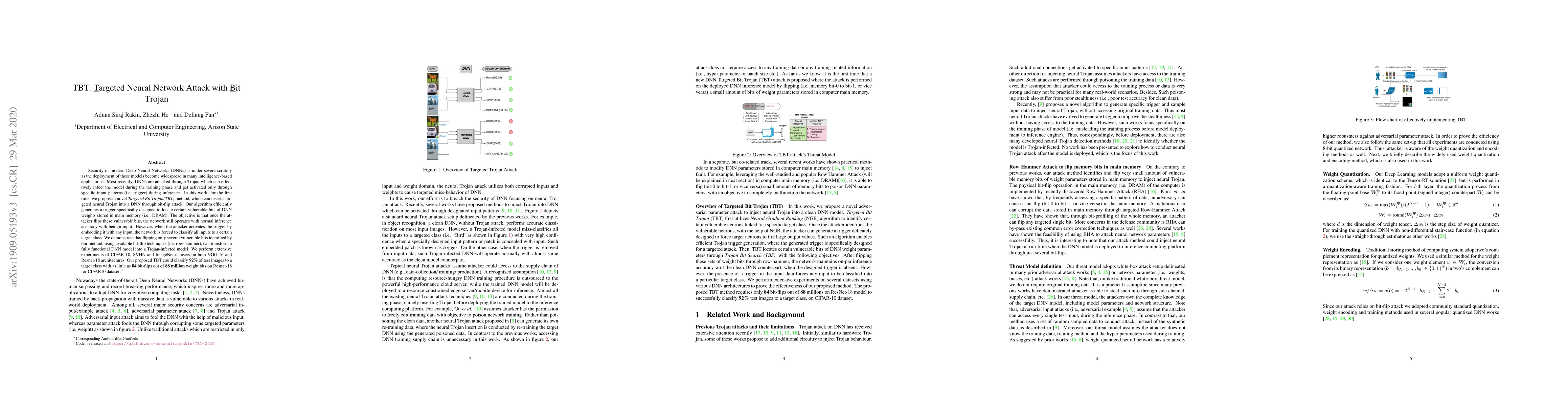Researchers propose a new method to infect deep neural networks with targeted Trojan attacks through bit-flip attacks, demonstrating successful attacks on popular architectures with only 84 out of 88 million weight bits flipped.