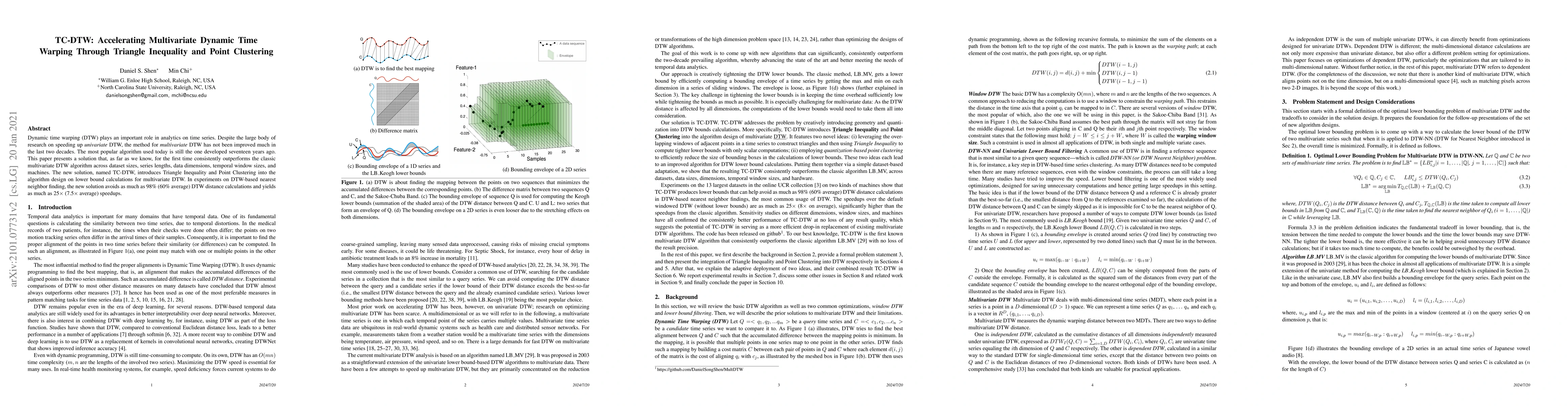 The paper introduces TC-DTW, a novel method to accelerate multivariate dynamic time warping (DTW) by leveraging Triangle Inequality and Point Clustering. TC-DTW significantly outperforms existing algorithms, achieving up to 98% reduction in DTW calculations and up to 25X average speedups.
