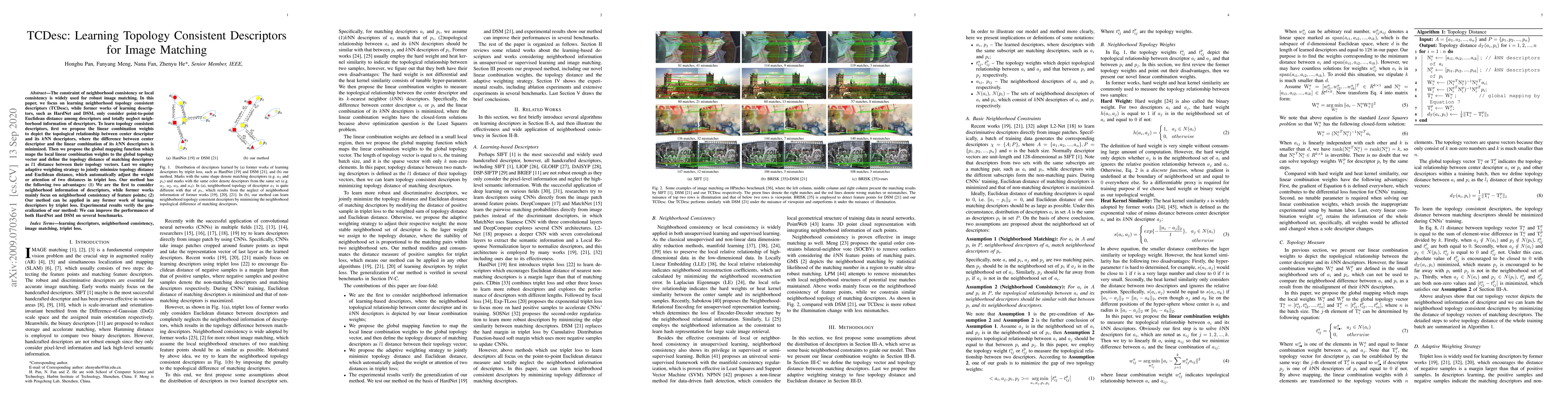 This paper introduces neighborhood topology consistent descriptors (TCDesc) for robust image matching, emphasizing the importance of considering neighborhood information beyond point-to-point Euclidean distances. It proposes a method to learn descriptors that incorporate topological relationships through linear combination weights and a global mapping function, ultimately improving upon existing descriptor learning techniques.